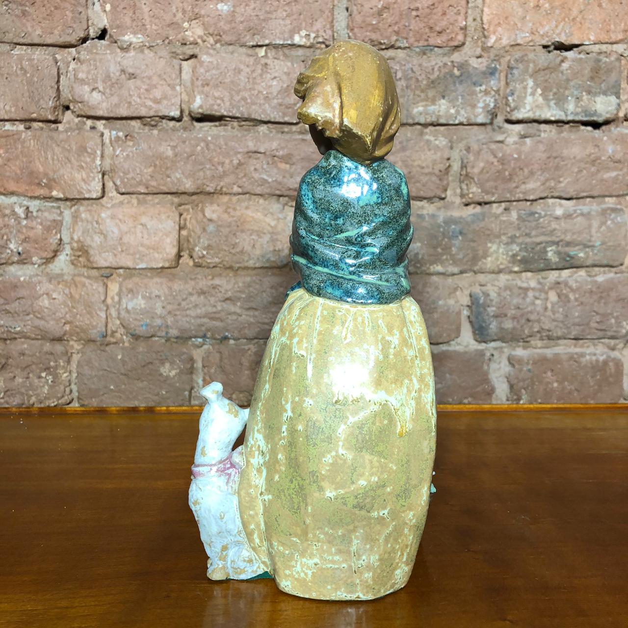 Керамическая статуэтка «Девочка с собачкой» 1960х годов, Испания. Роспись эмалью. Стоит клеймо. Высота 22 см.