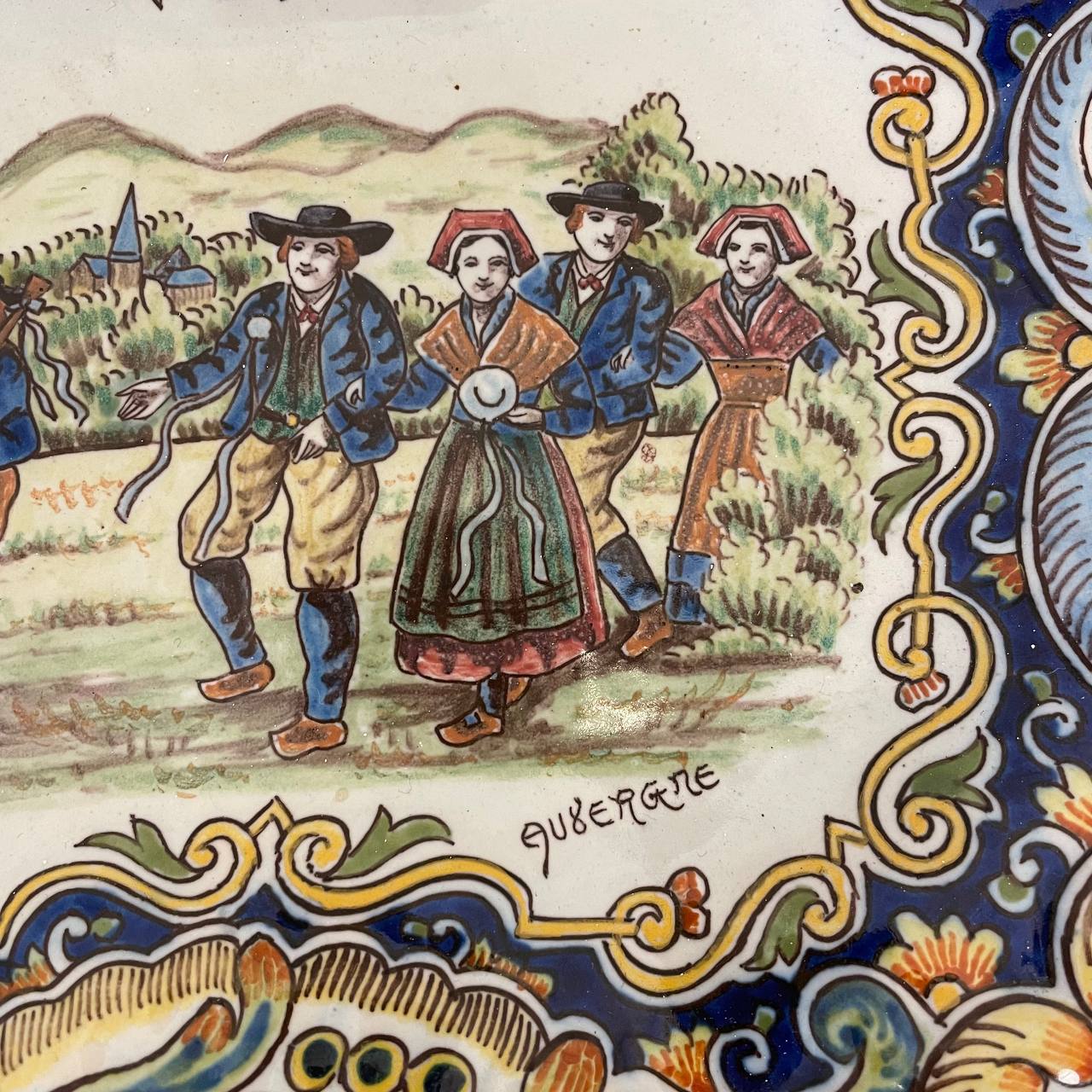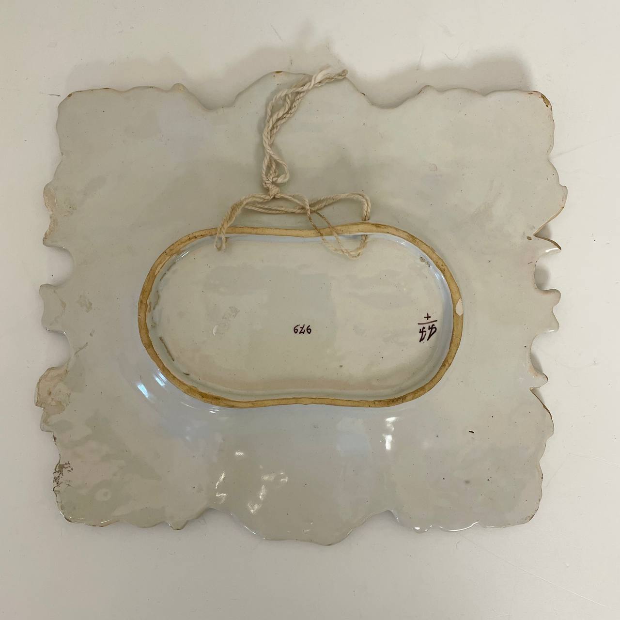 Антикварное фигурное блюдо XIX века, Руан, Франция. Фаянс, ручная роспись. Стоит подпись и маркировка. Размер 26х25 см.