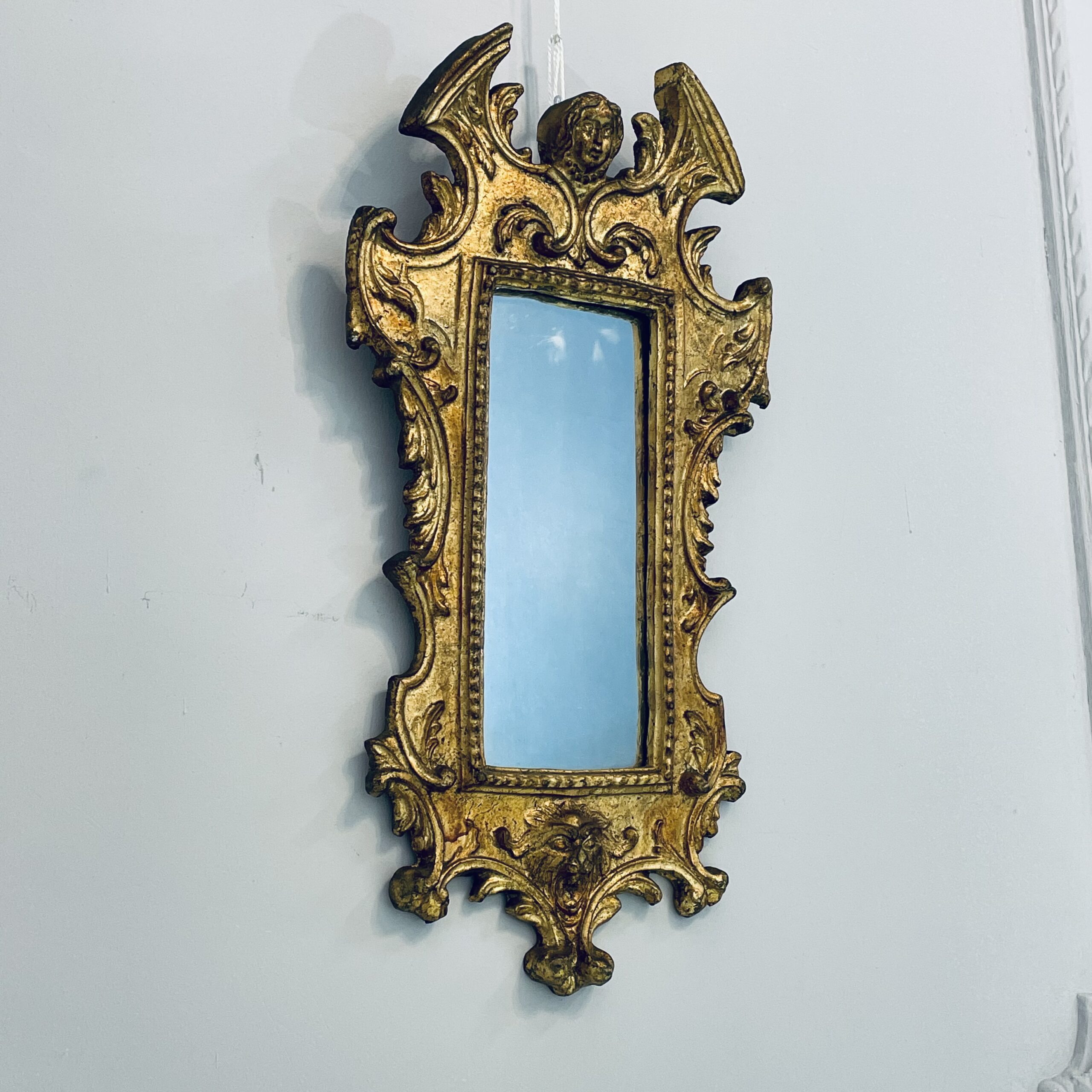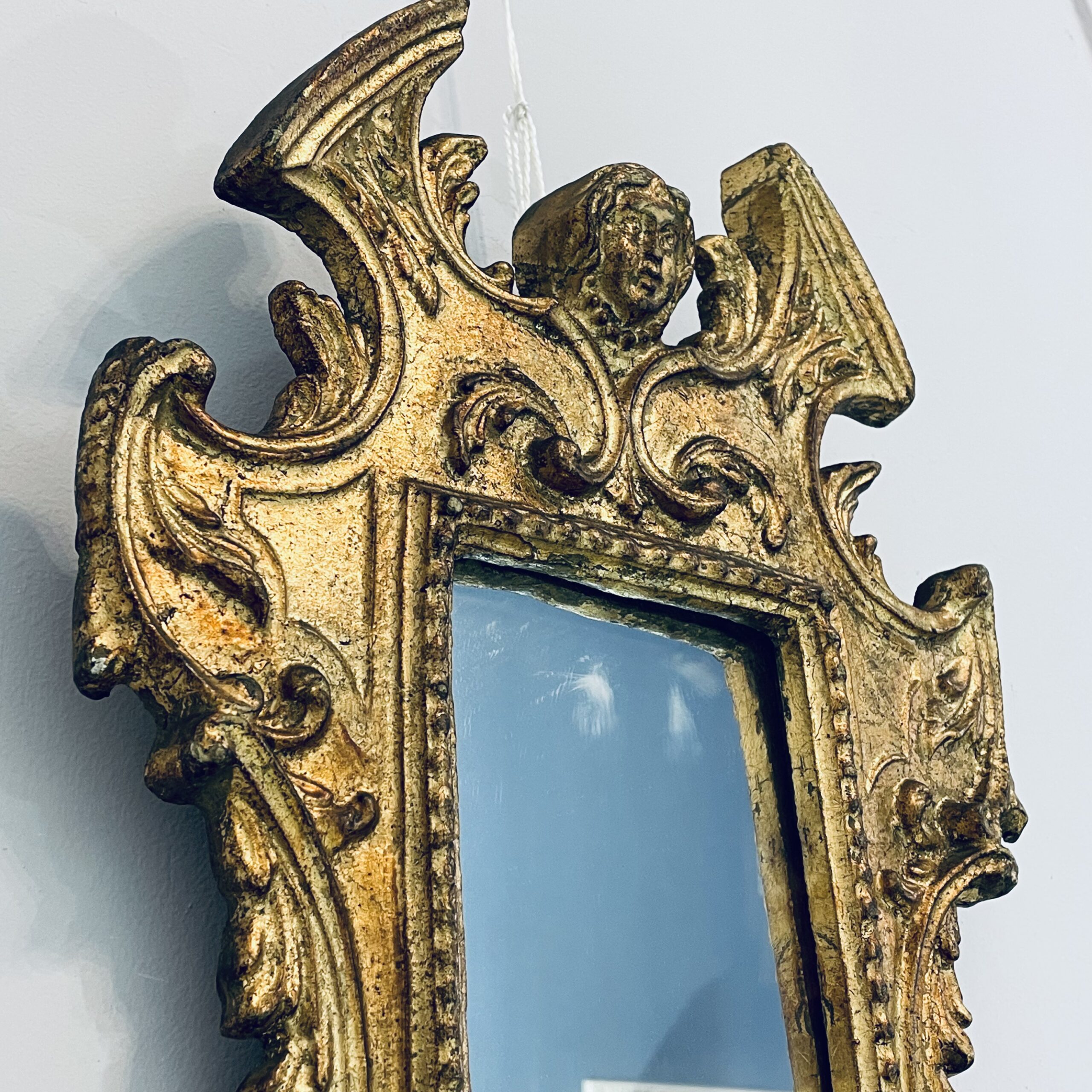 Антикварное небольшое зеркало начала ХХ века из Франции. Выполнено из дерева и позолотой. Размеры: 32х64h см.