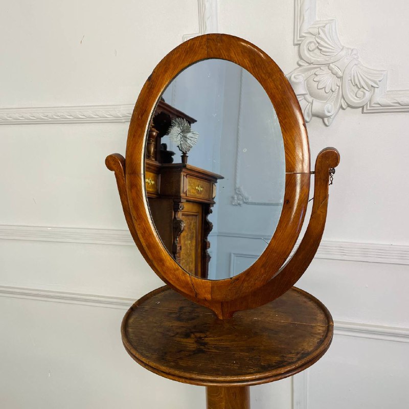 Зеркало-псише из красного дерева, ХIХ век, Франция. Высота: 145 см. Диаметр столика: 38 см.