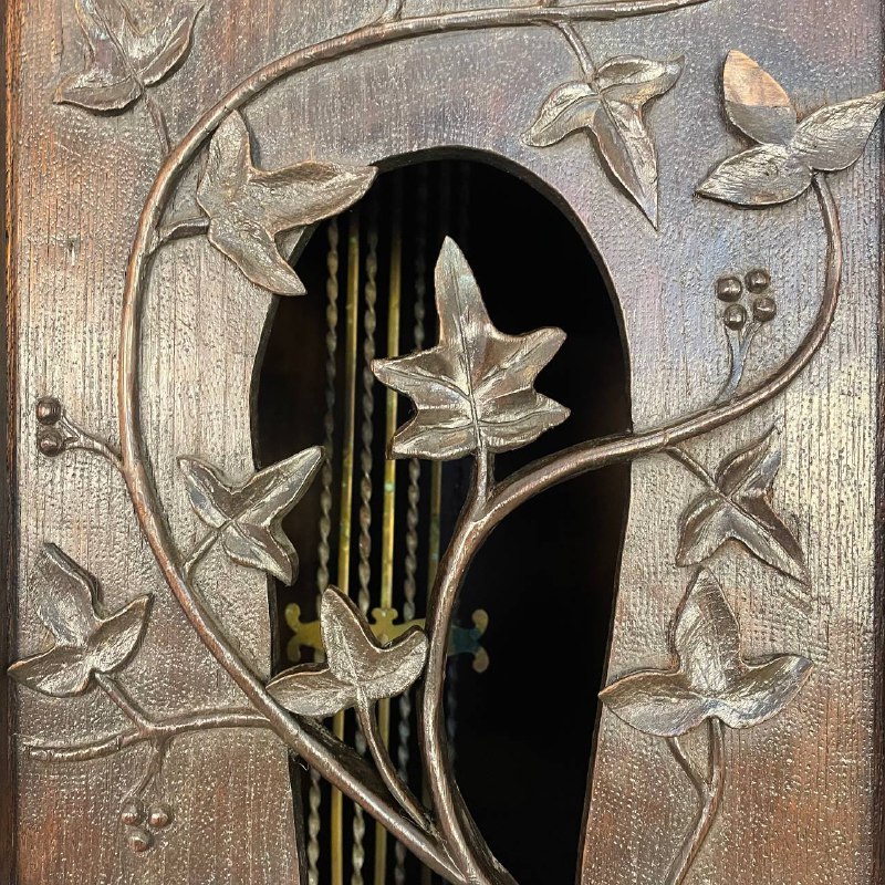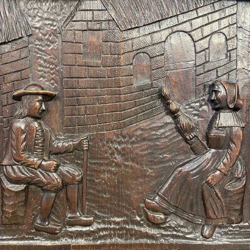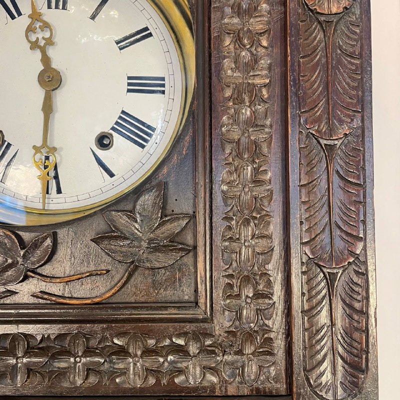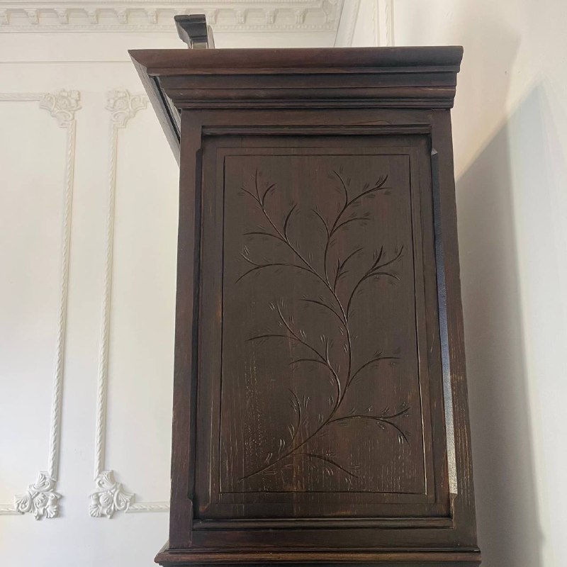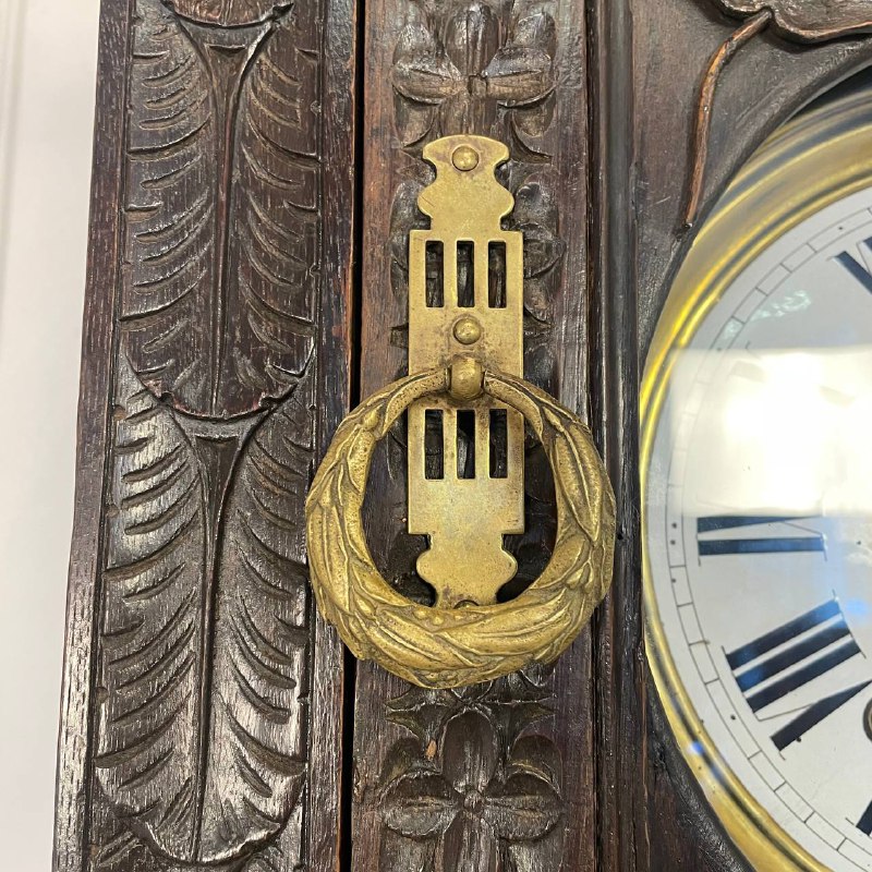 Напольные часы в бретонском стиле, конец ХIХ века, Франция. Массив дуба, резьба с жанровыми сценками, бронзовая фурнитура. Размер: 57х41х245h см.