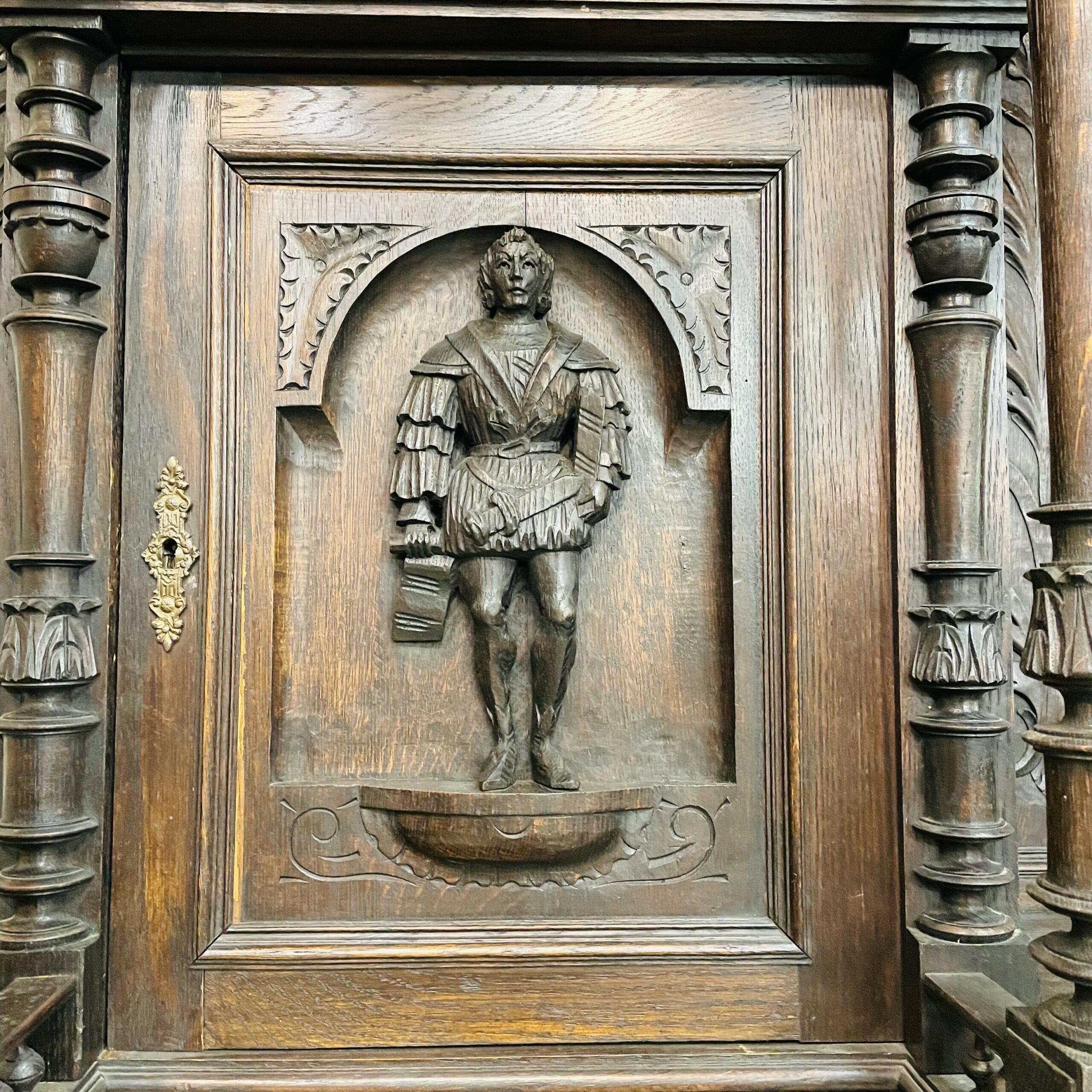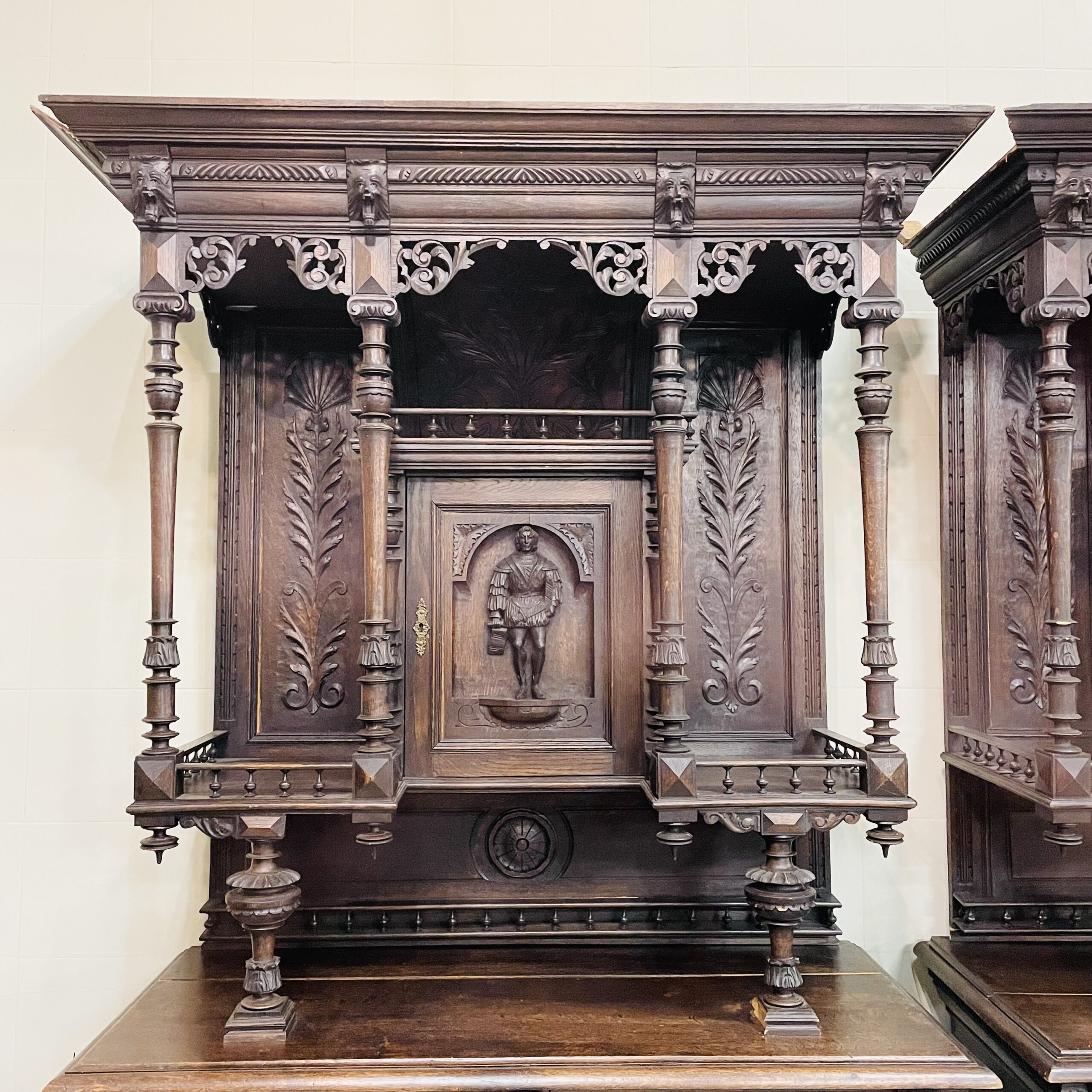 Пара антикварных резных буфетов XIX века (1870-1890) в стиле ренессанс, Франция. Массив дуба, ручная резьба. Размер одного буфета: 240х130х60 см. Цена за пару.