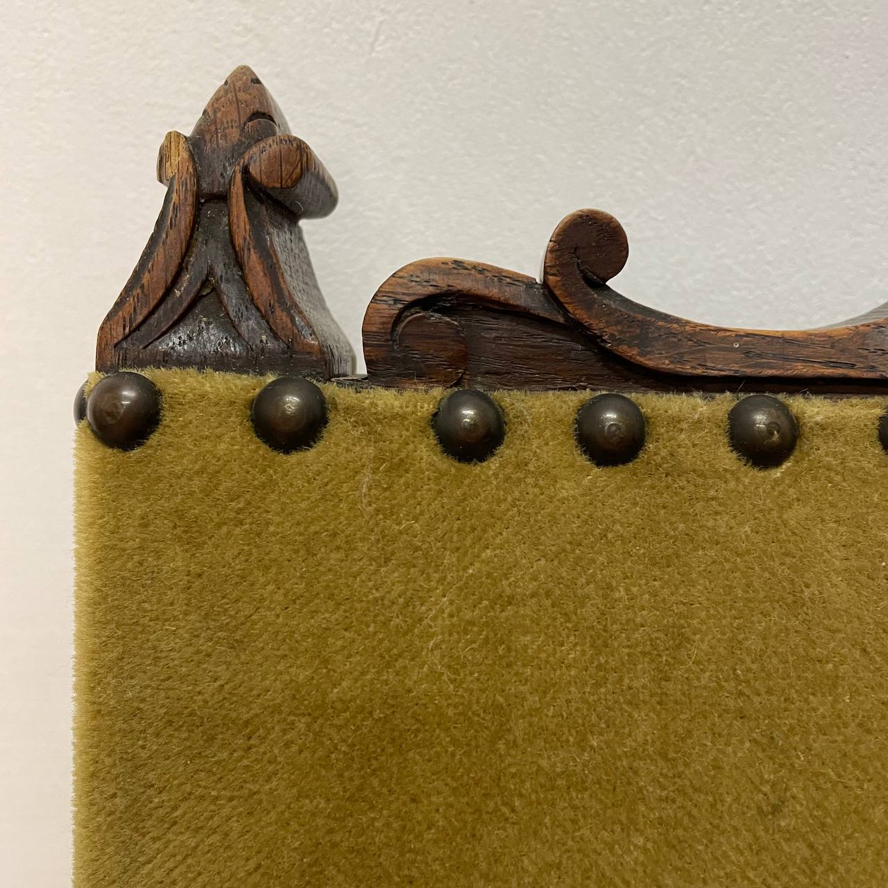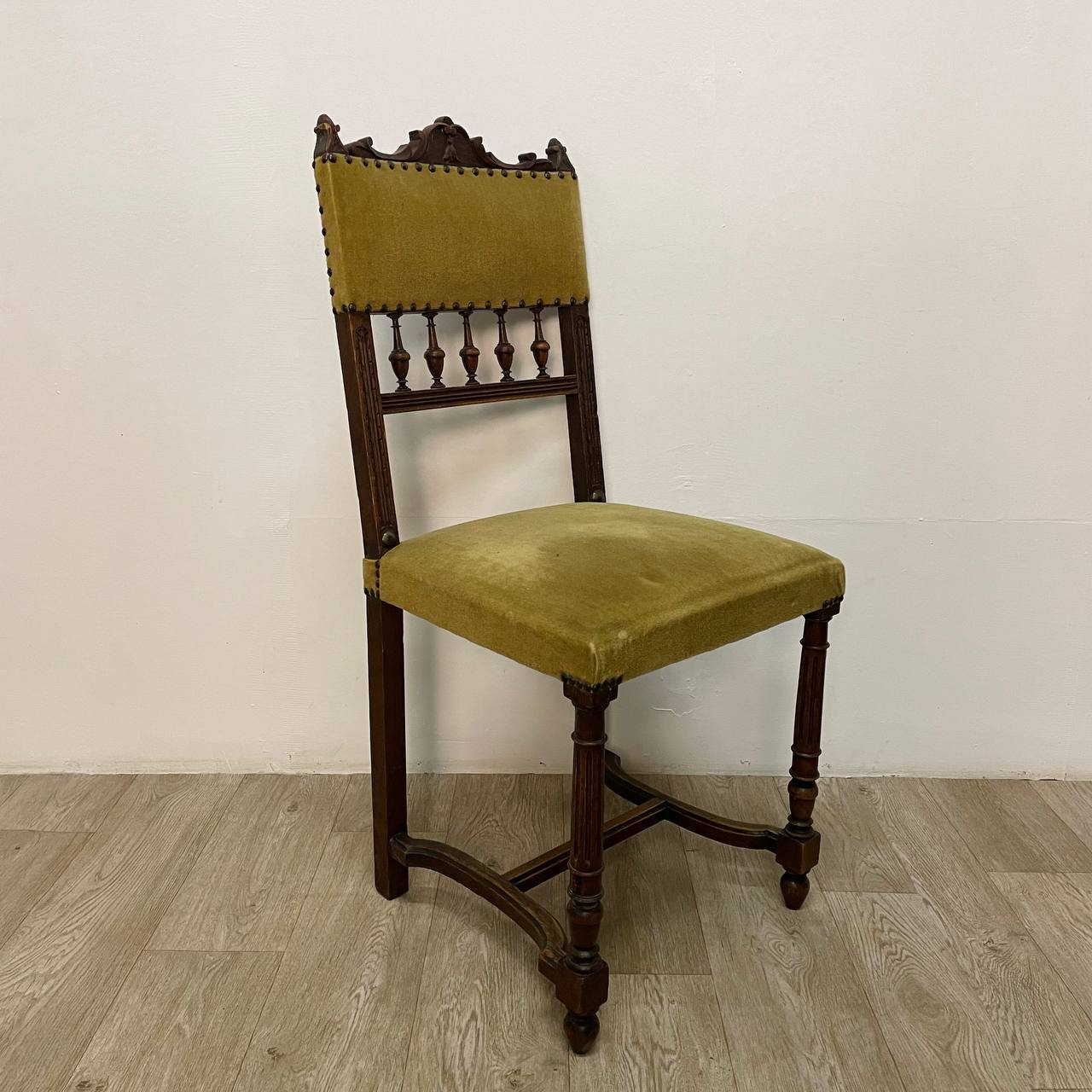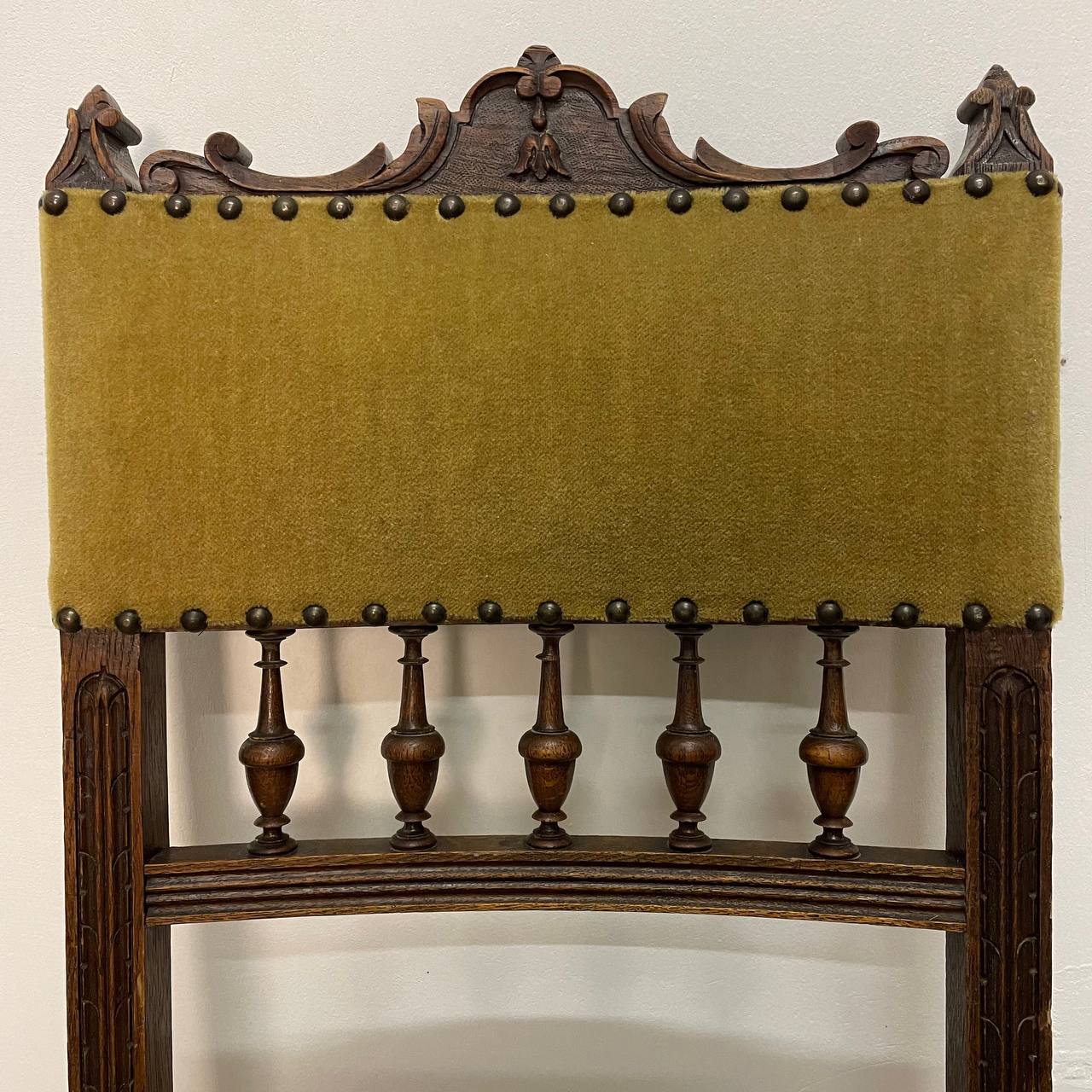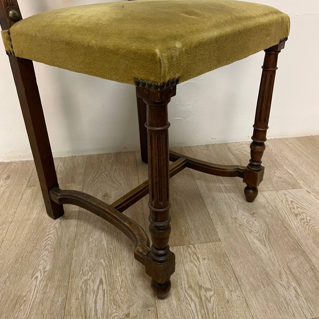 Антикварные стулья рубежа XIX-XX вв, Бельгия. Выполнены из массива дуба. Резьба ручной работы в виде геральдических лилий. В наличии 4 шт. Размер 42х41х95h см Цена за 1 шт.