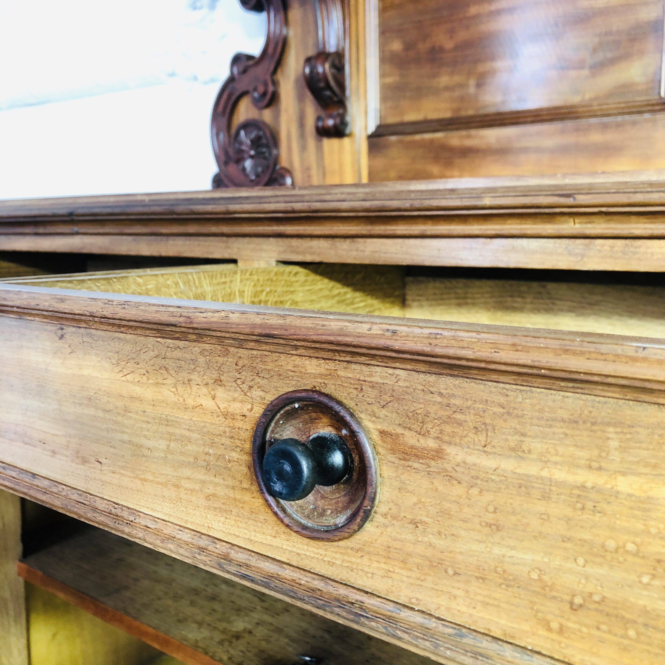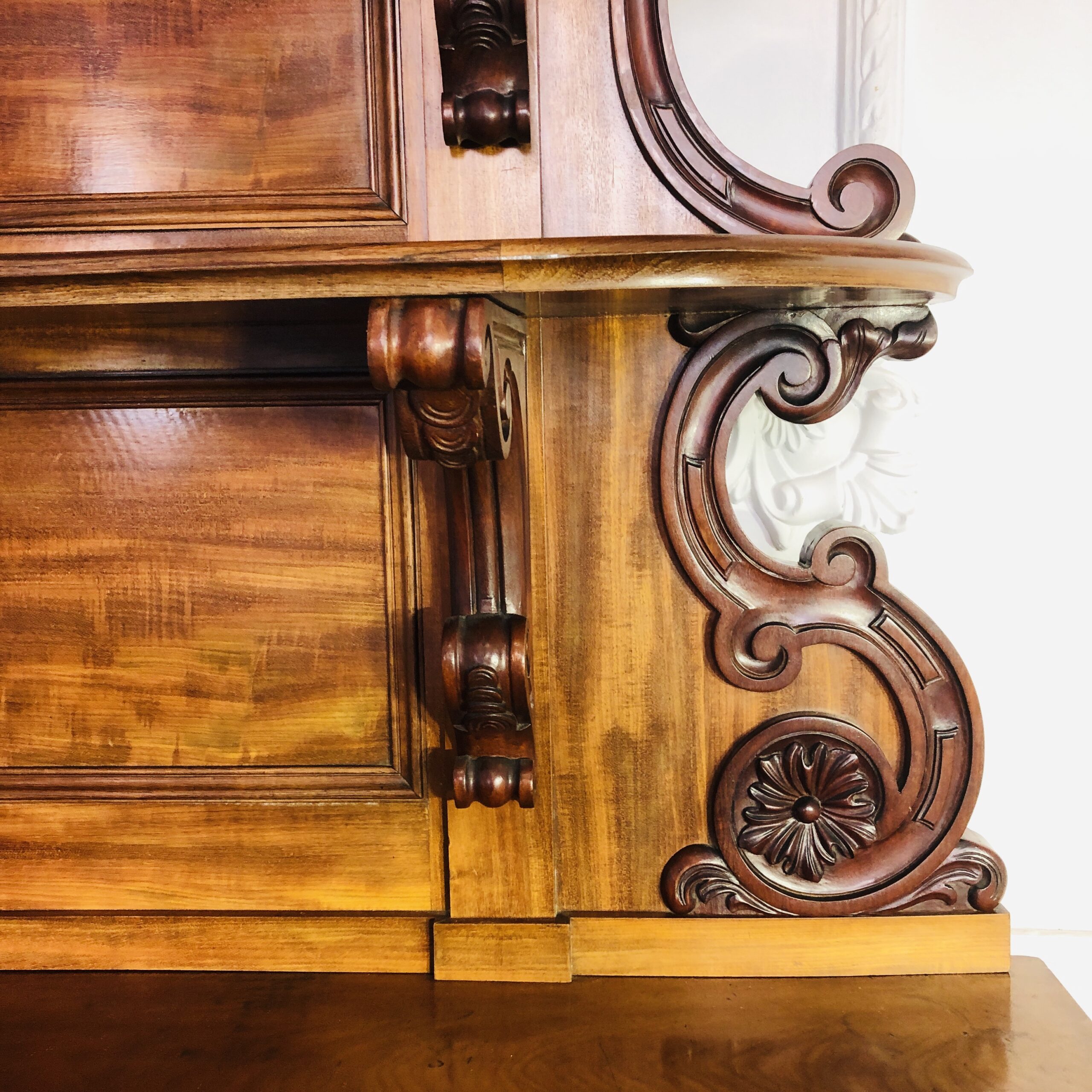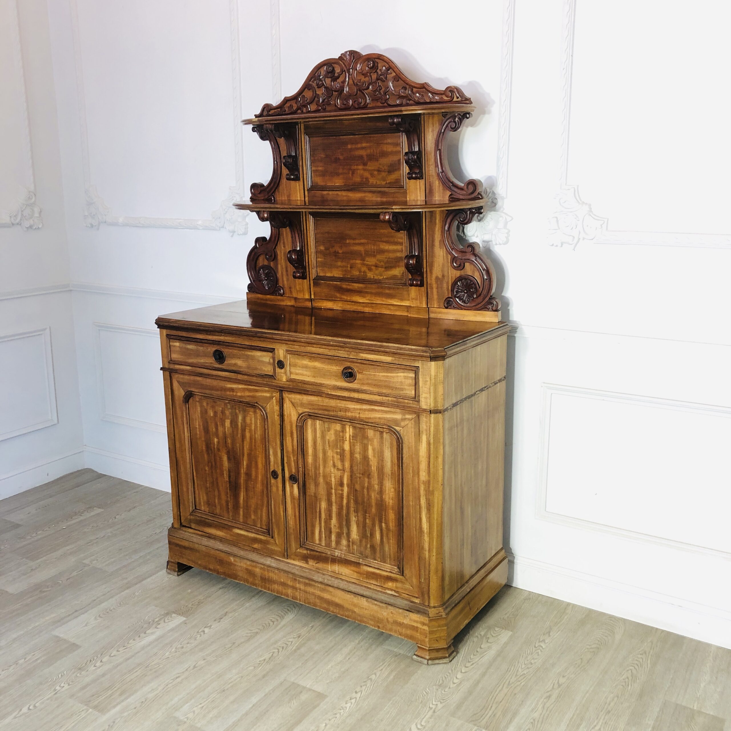 Антикварный буфет первой половины XX века из Франции. Выполнен из красного дерева, изящная ручная резьба. Размеры: 122х52х192h см.