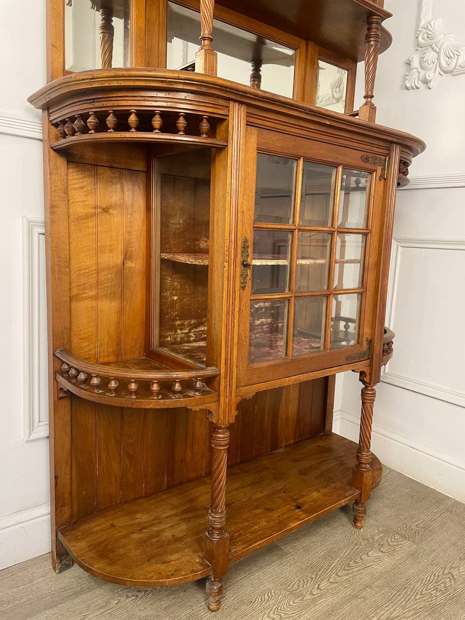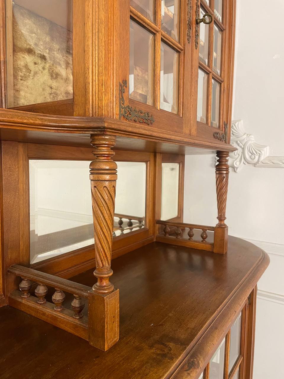 Антикварный буфет XIX века, Edm-d Rey, Марсель, Франция. Выполнен из массива ореха. Оригинальные стекла с фацетом. Оригинальная латунная фурнитура. Размер 101х37х183h см.