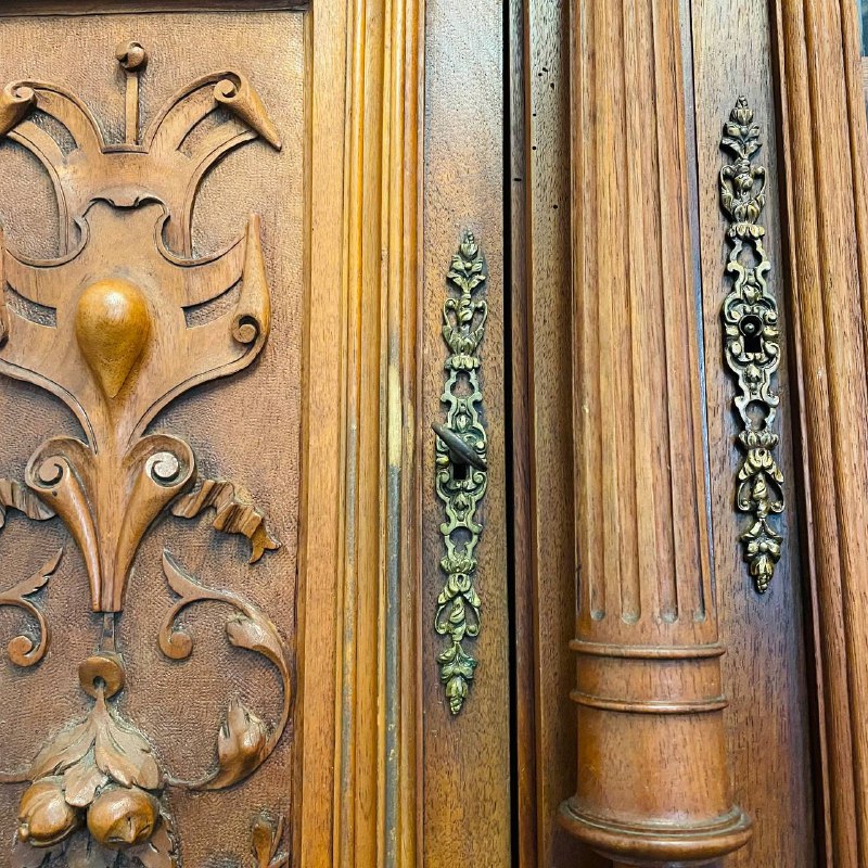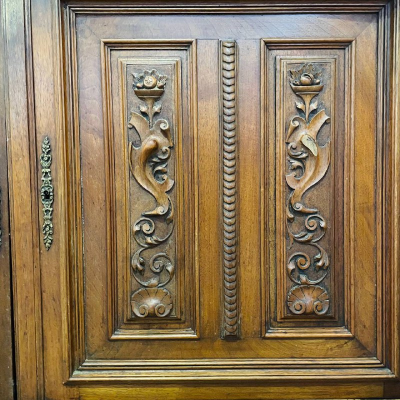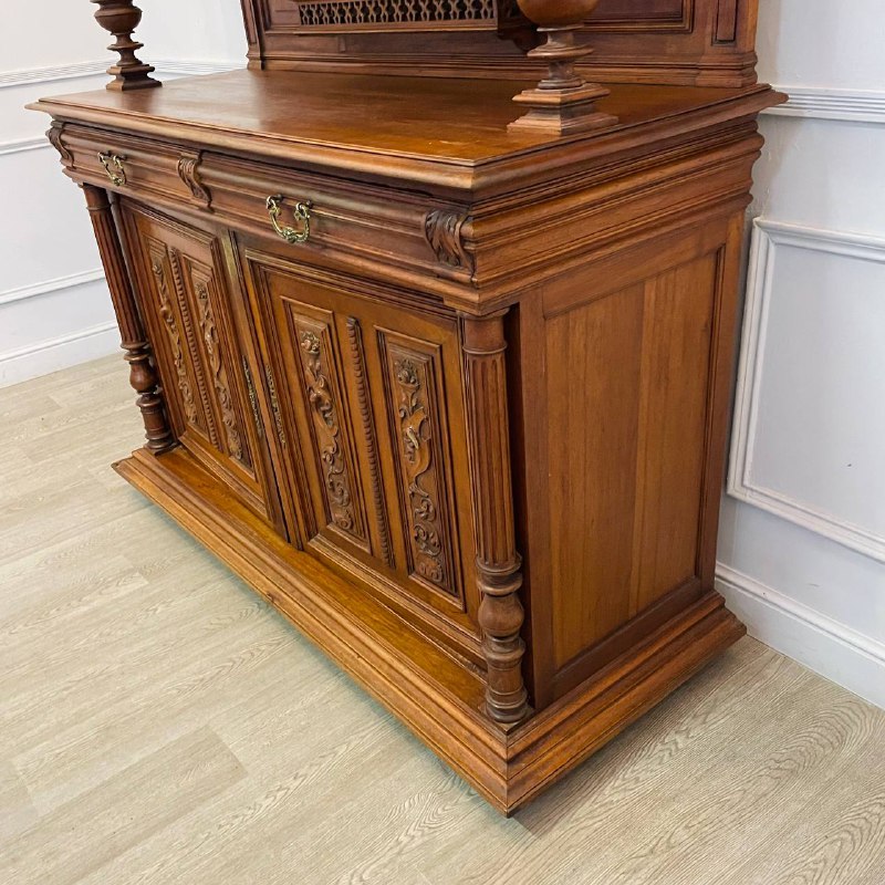 Буфет из массива ореха начала XX века, Франция. Оригинальная бронзовая фурнитура. Размер: 155х60х260h см.