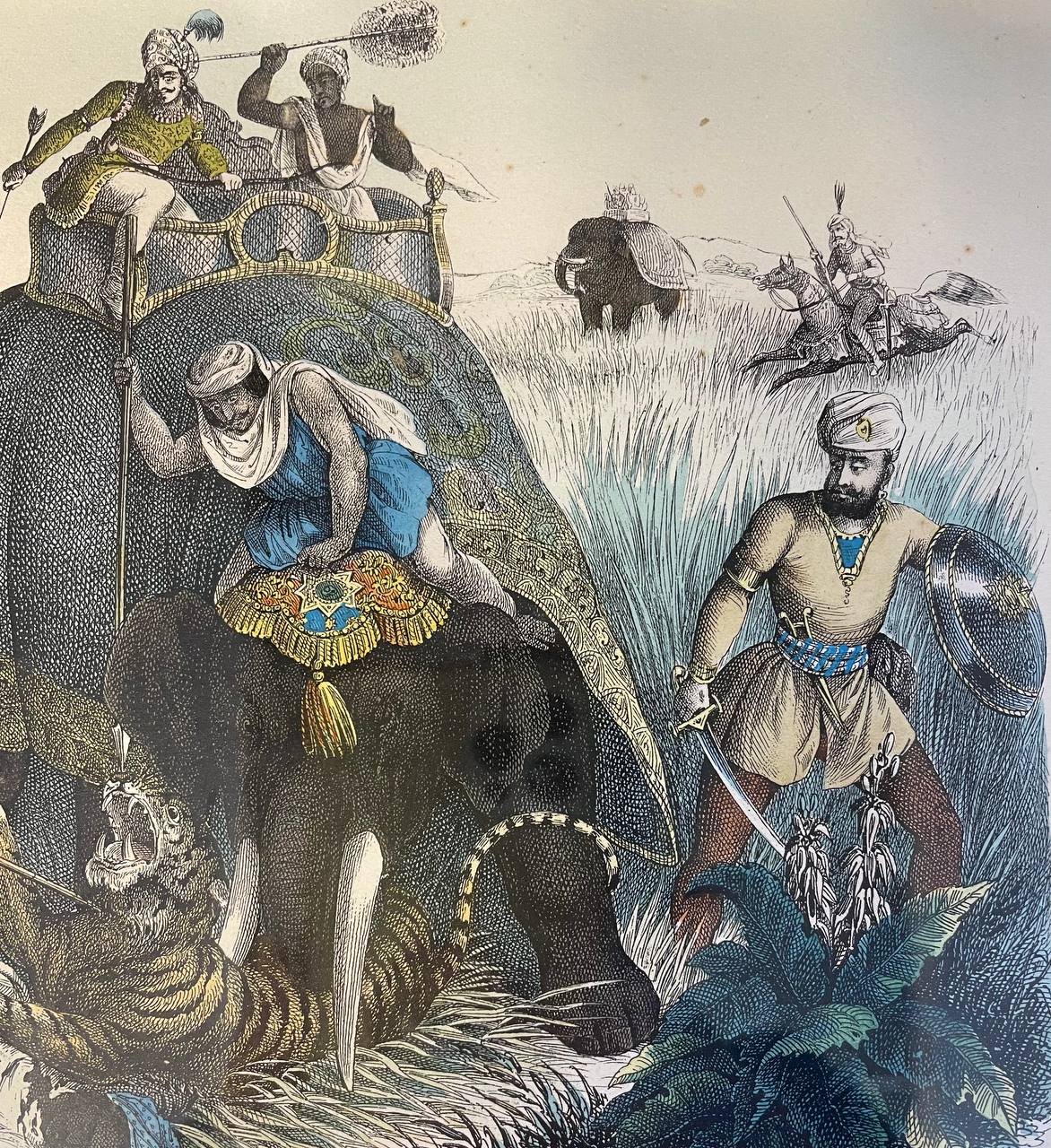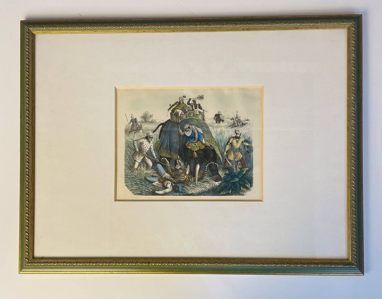 Антикварный эстамп "Охота на тигра"