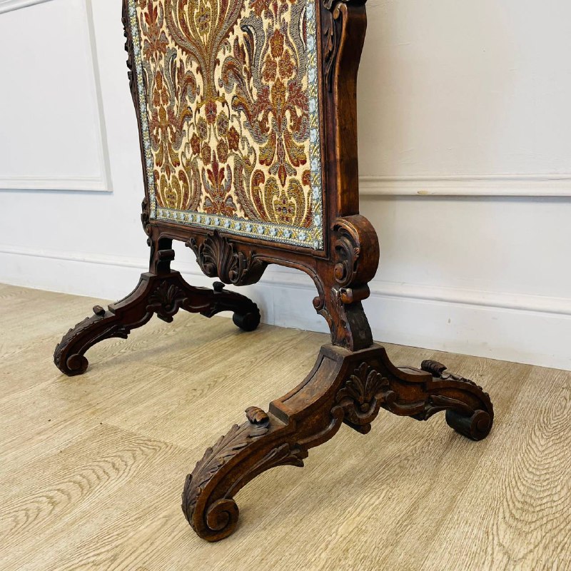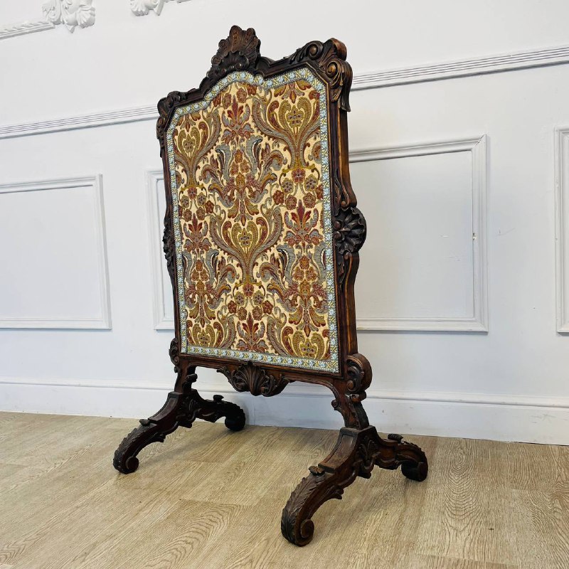 Антикварный каминный экран, конец ХIХ века, Франция. Массив ореха, бархатный жаккард. Размер: 66х42х104h см.