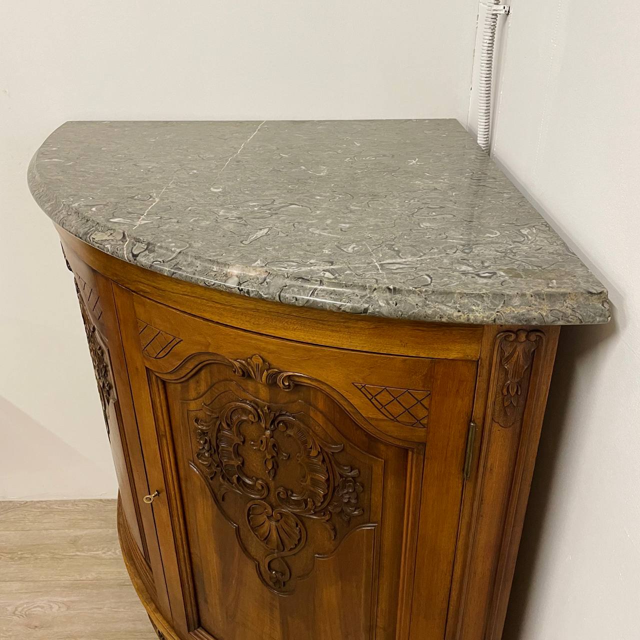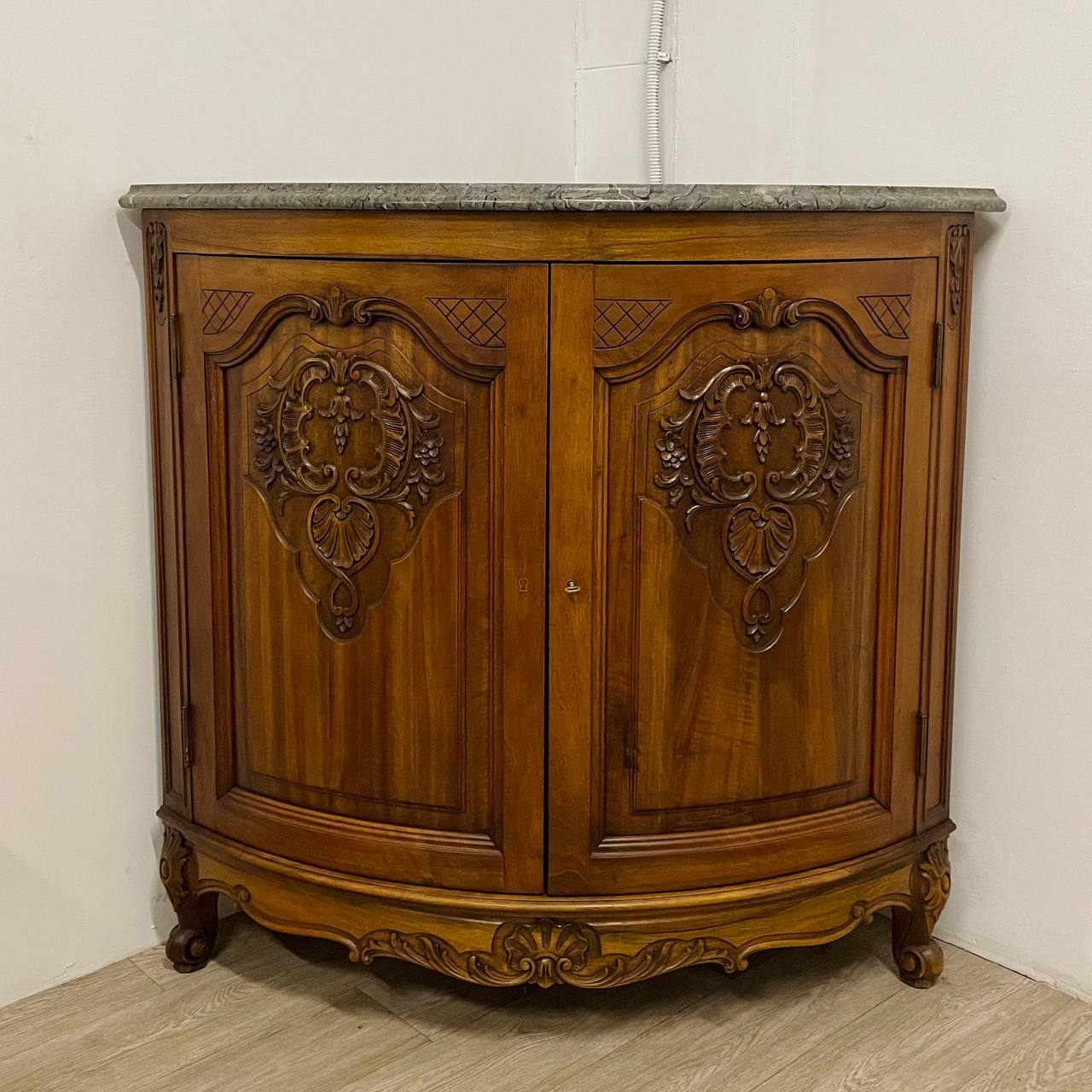 Угловой антикварный комод из массива ореха, конец ХIХ века, Франция. Столешница из мрамора. Комод после полной профессиональной реставрации. Размер: 80х80х105h см.