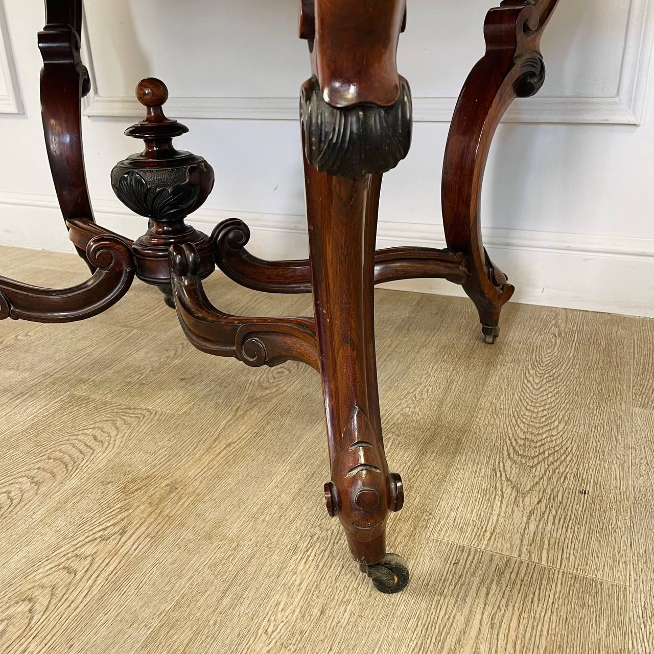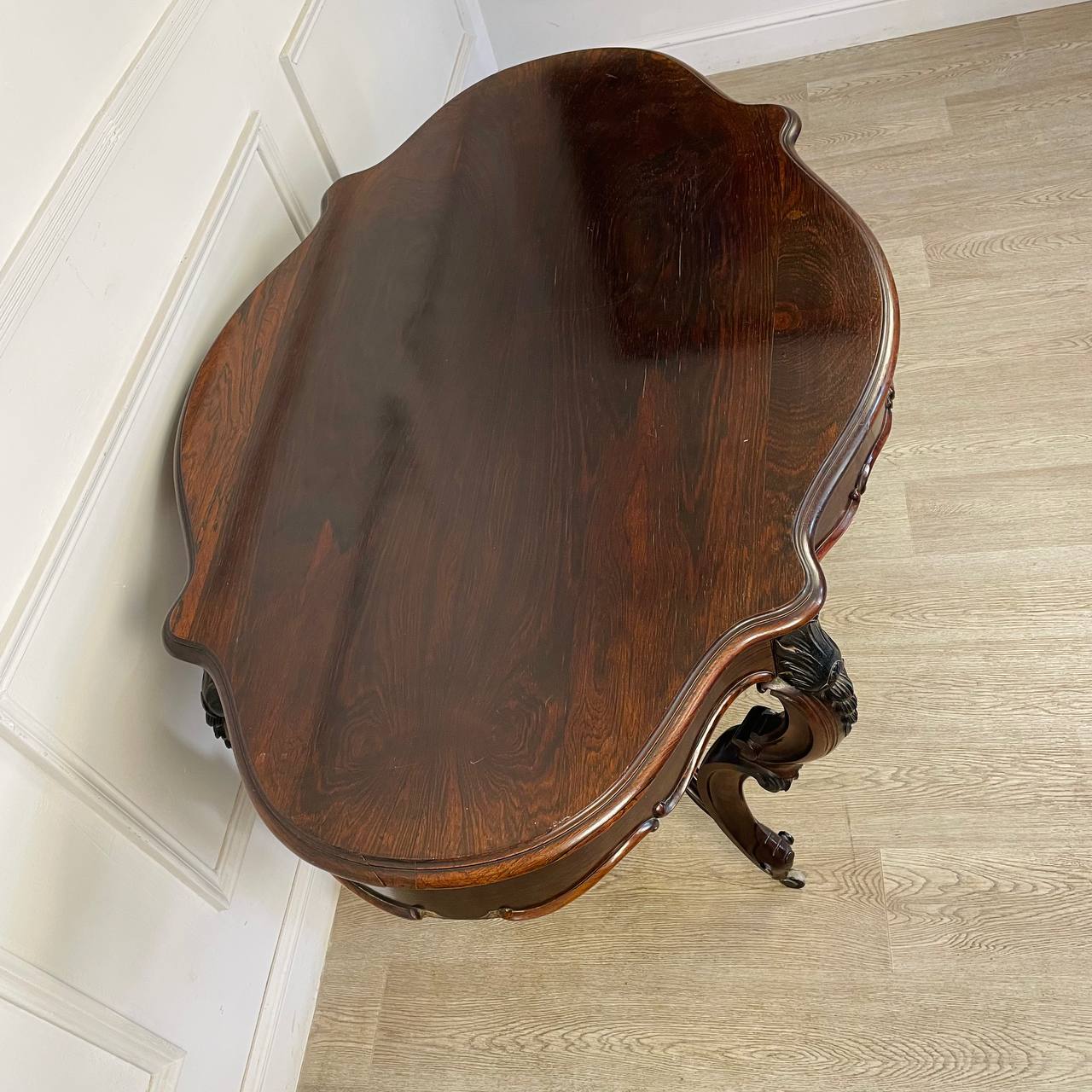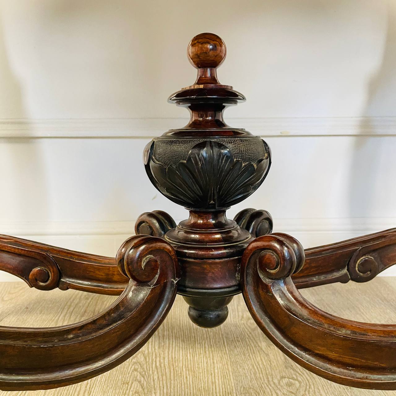 Антикварный обеденный стол на колесиках фигурной формы "Скрипка" начала XX века, Франция. Выполнен из палисандра, одной из самых дорогих пород дерева. С двух сторон имеются выдвижные ящички. Размер 128х84х74h см.