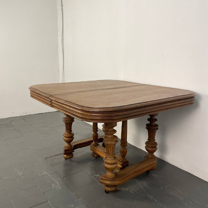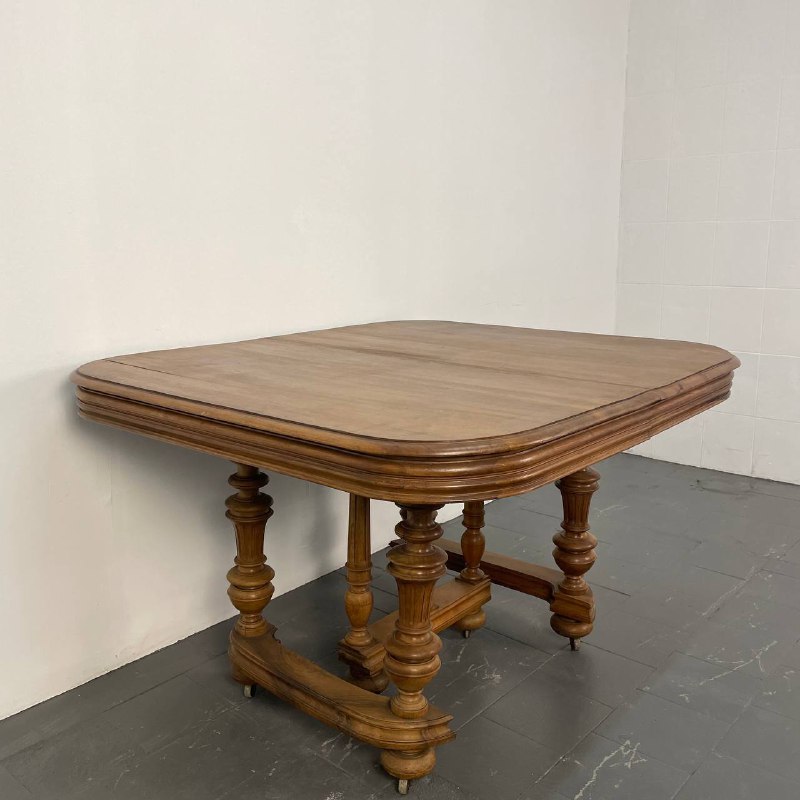 Обеденный стол из массива ореха, начало ХХ века, Франция. Стол раскладывается. Оригинальные вставки не сохранились, но можем сделать на заказ. Размер: 114х105х71 см. В разложенном виде: 226х105х71 см.