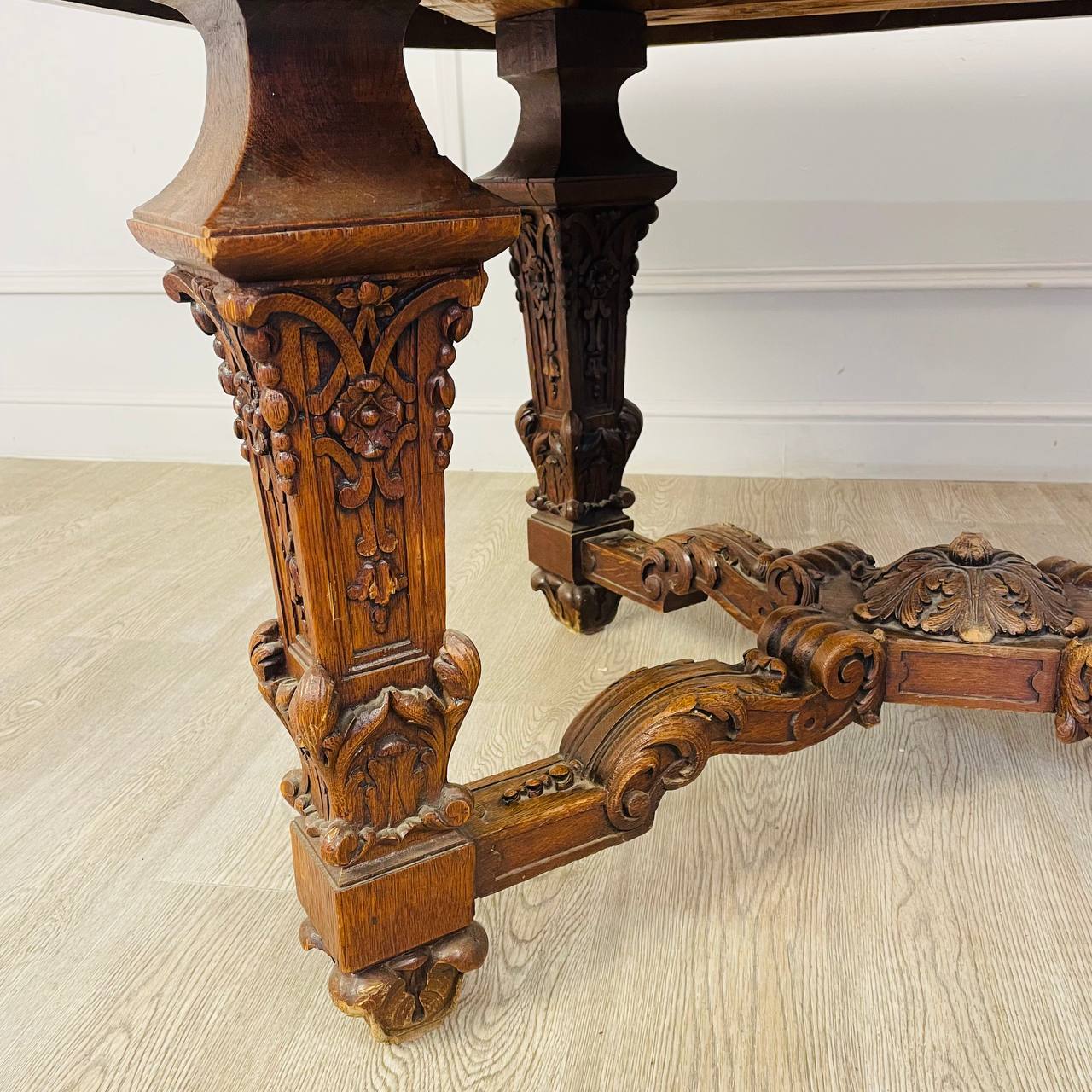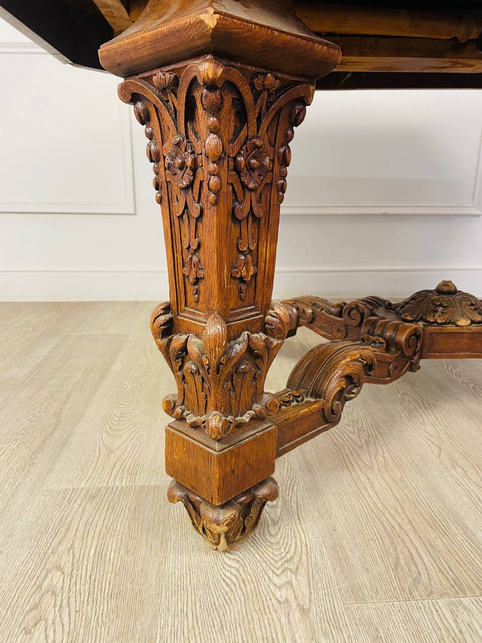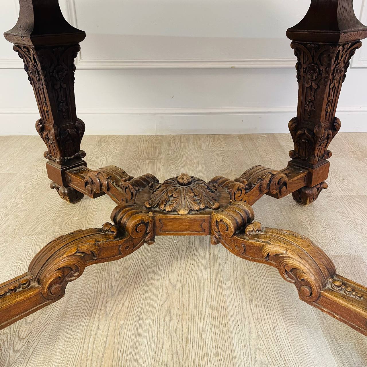 Восьмиугольный обеденный стол конца ХIХ века, Франция. Выполнен из массива дуба, резьба ручной работы по периметру. Может раскладываться. Размер: 136х118х74h см.