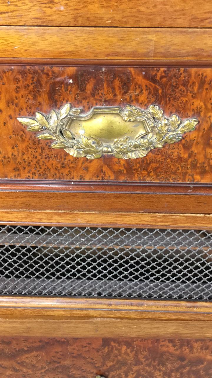 Редкий антикварный шкафчик для патефона конца XIX века из Франции. Предназначен для патефона или проигрывателя, нижнее отделение для пластинок или нот. Выполнен из ореха и корня ореха, оригинальная бронзовая фурнитура. Обратите внимание, что верхняя часть может откидываться наверх. Размер 63х45х140/175h см.