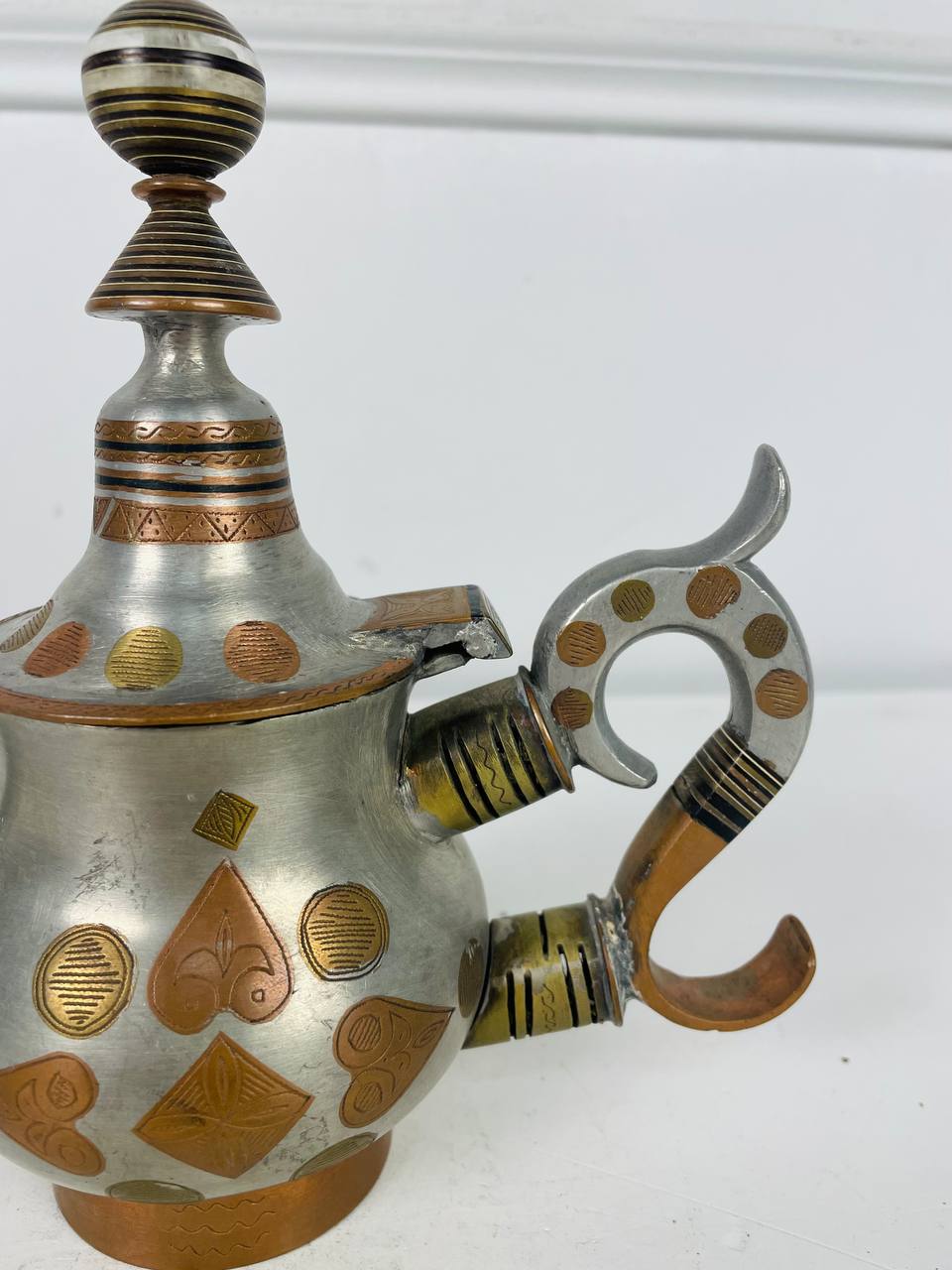 Антикварный чайник в восточном стиле с цветочным орнаментом