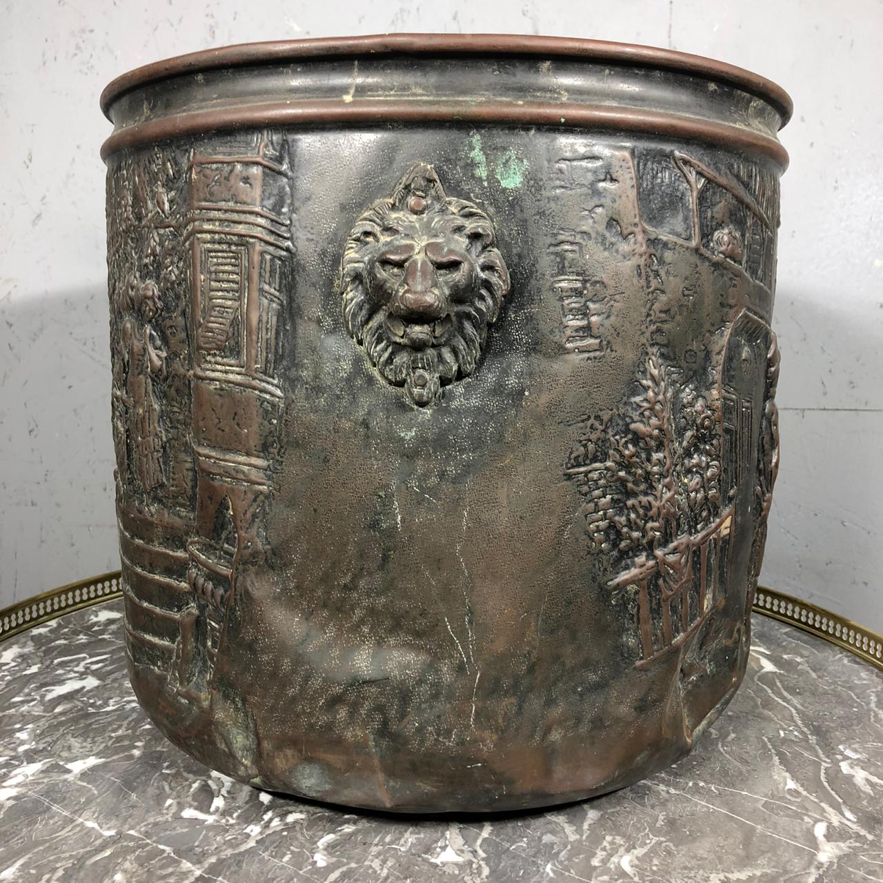 Большое кашпо начала XX века Франция. Выполнено из меди. Размер  D 37 см h35 см