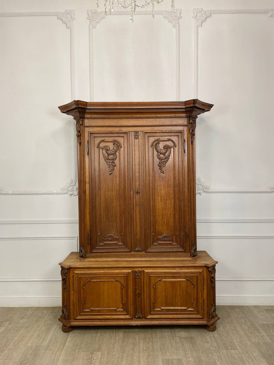 Буфет конца XIX века, Франция. Выполнен из массива дуба. Резьба ручной работы. Внутри полки. Размер 160х50х220h см