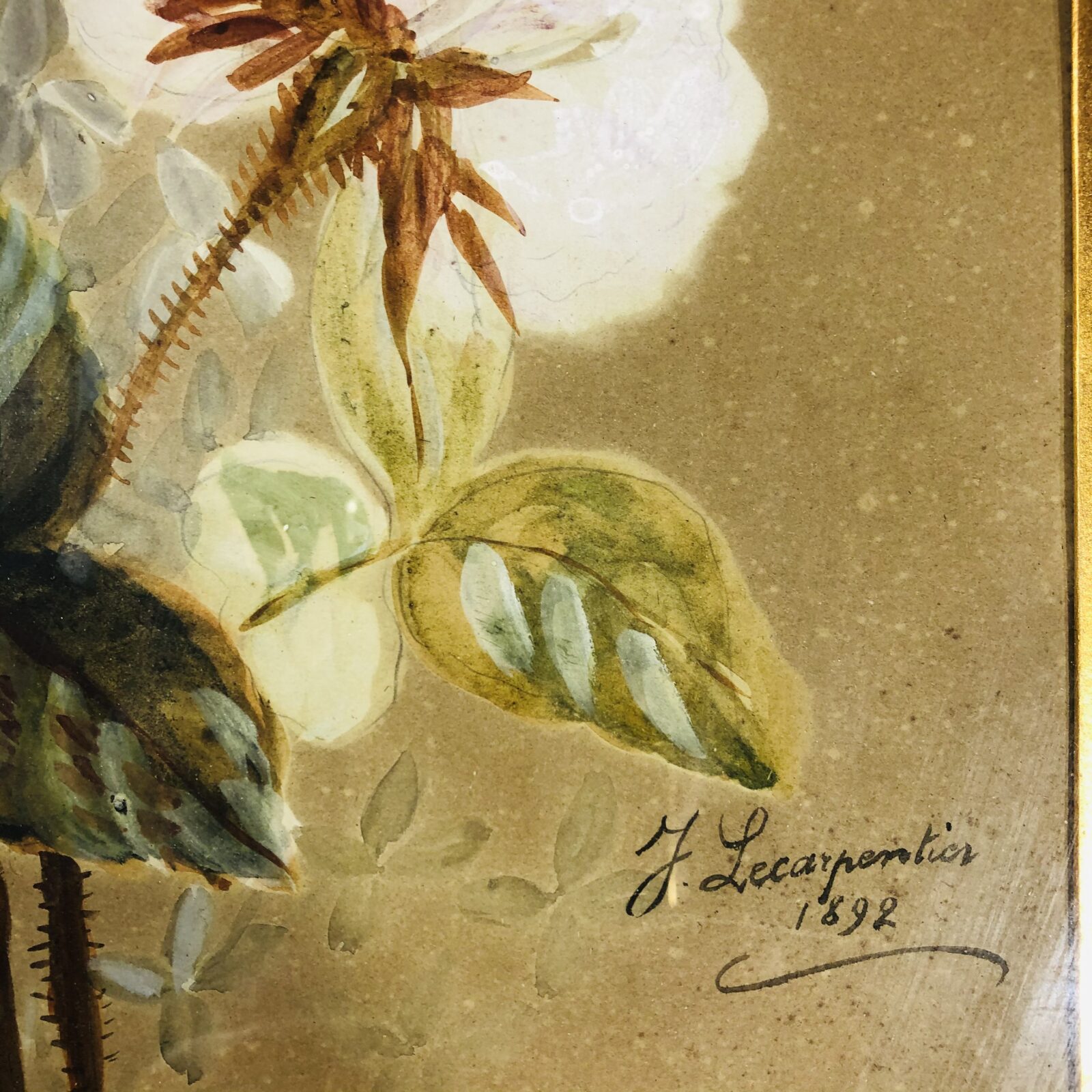 "Букет" антикварная акварель, J. Carpentier 1892 г.