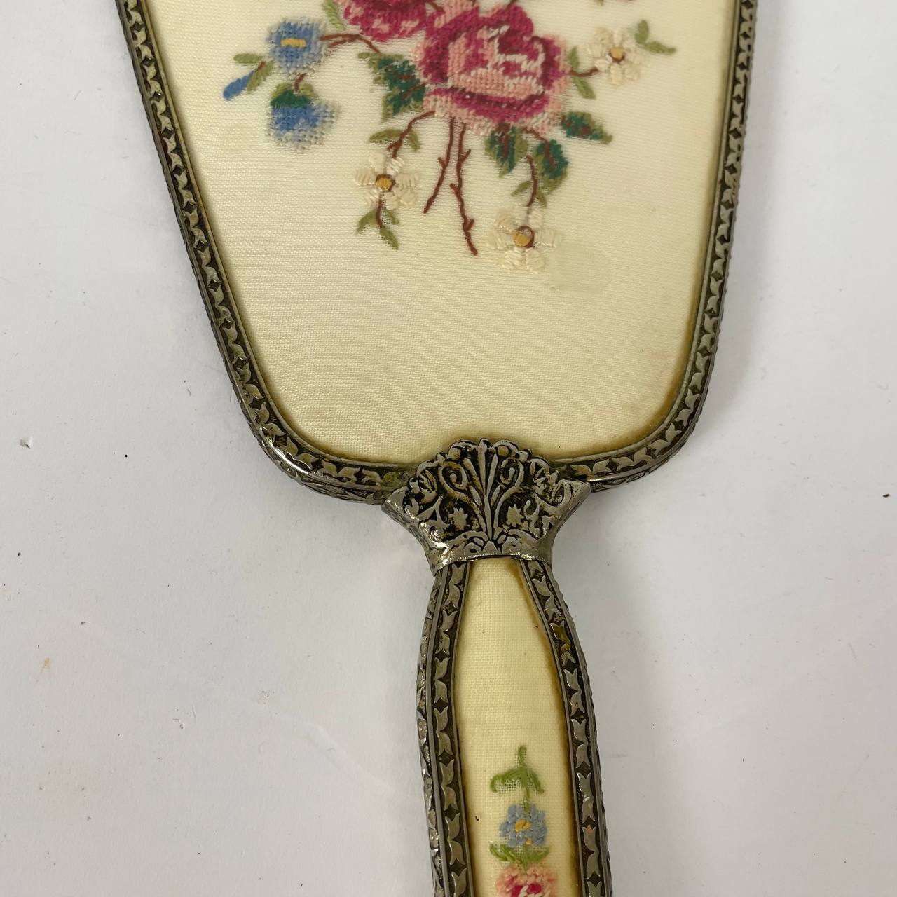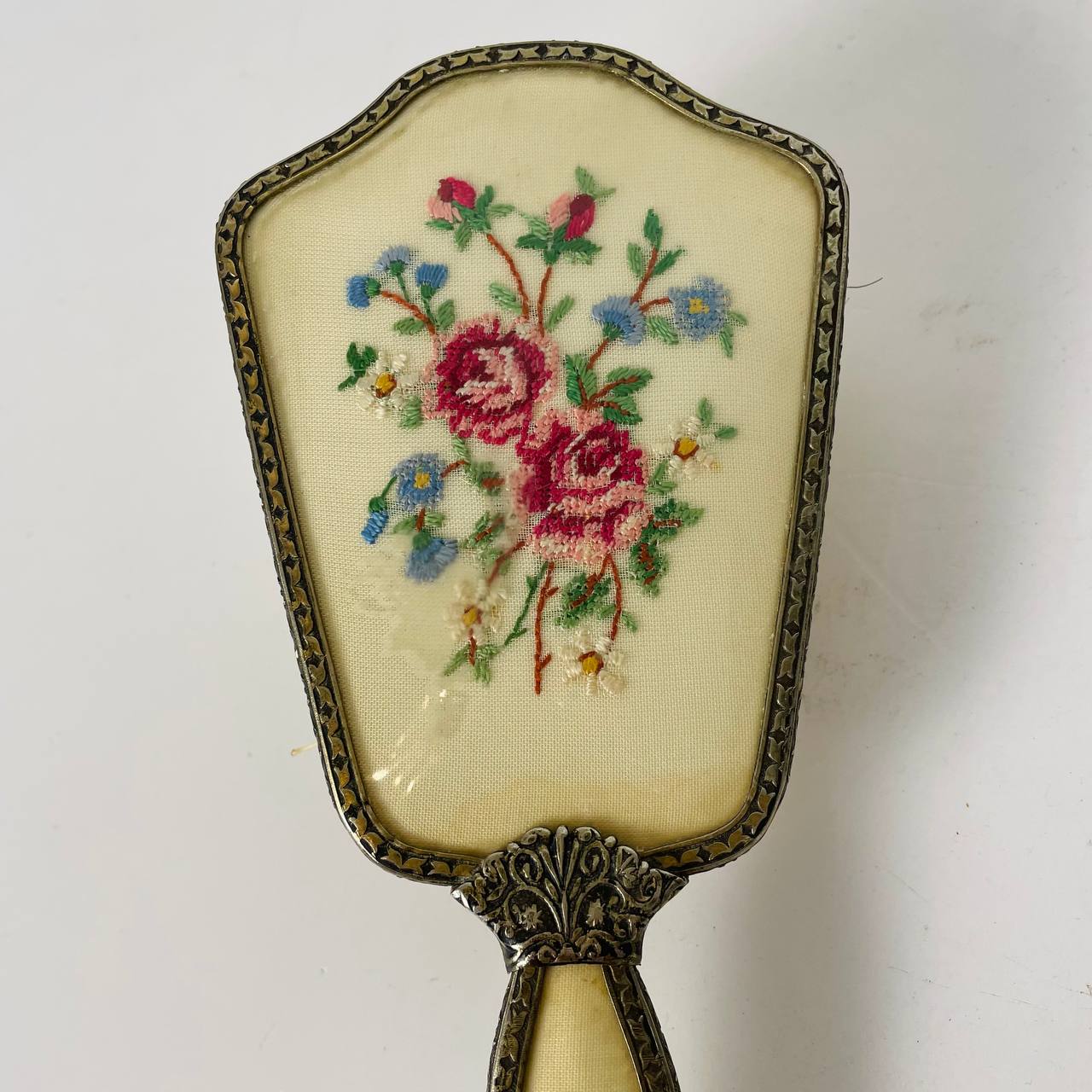 Винтажный дамский туалетный набор из трёх предметов, середина ХХ века, Франция. Бронза, текстиль, вышивка.