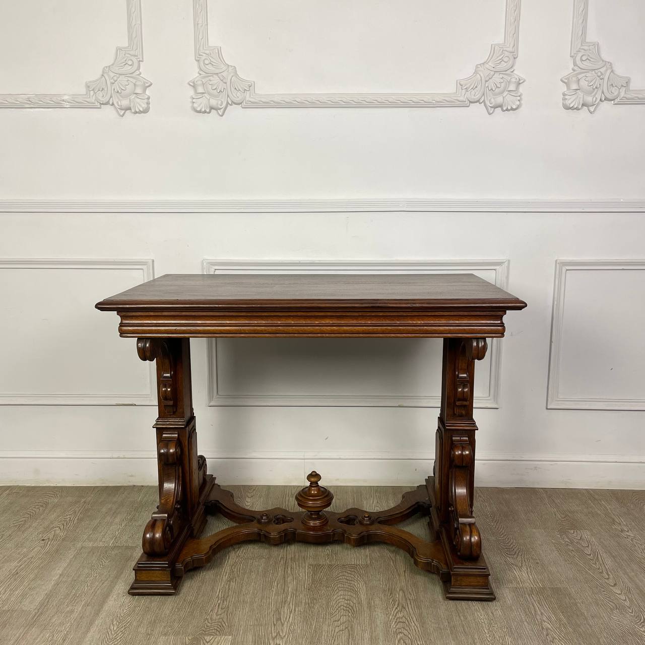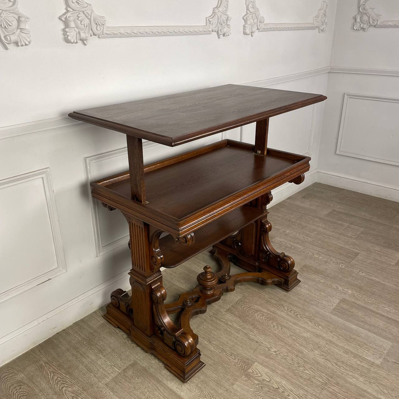 Десертный столик XIX века, Франция. Очень редкий вариант механического десертного столика, который раскладывается в три яруса. Выполнен из массива дуба. Размер 100х58х76/104h см.