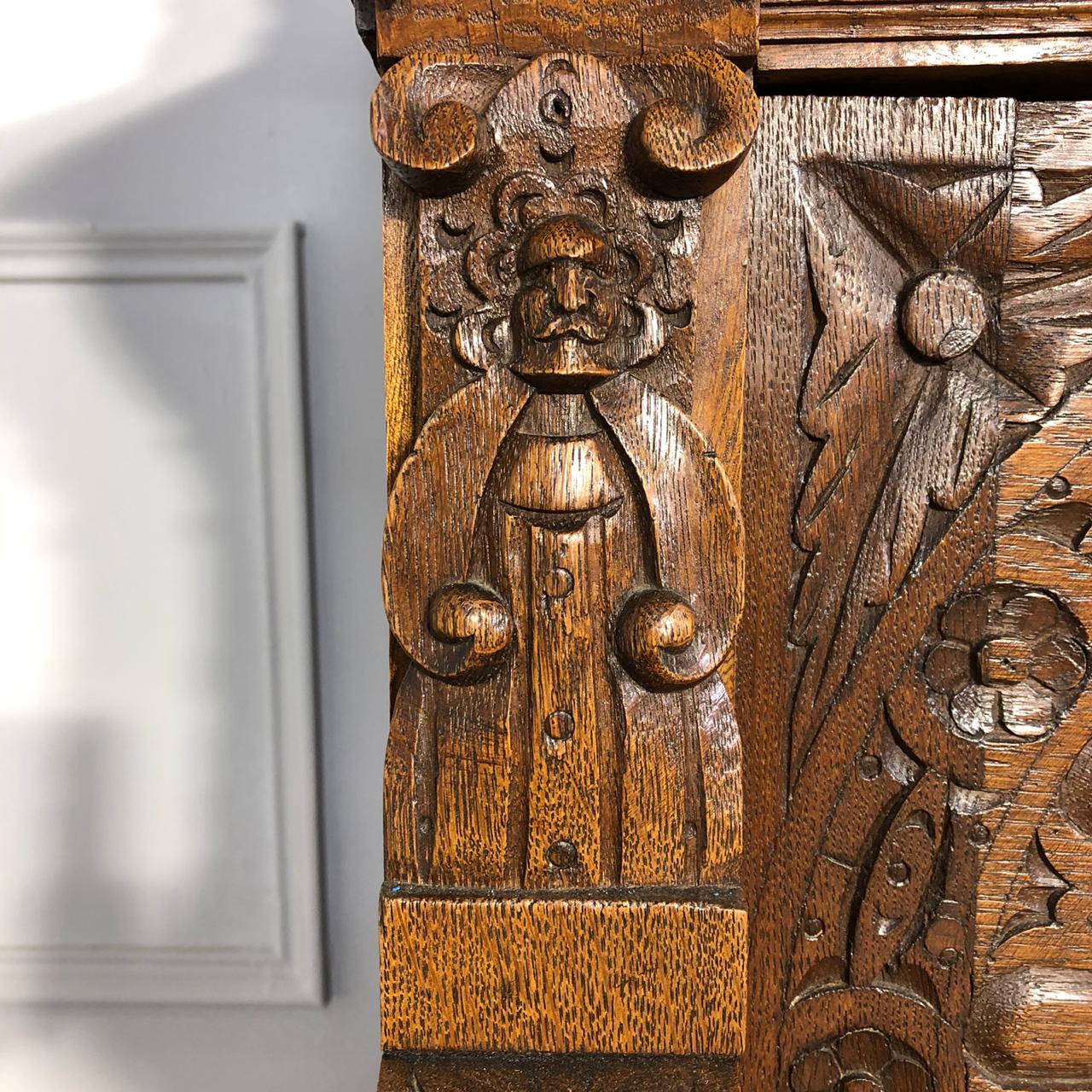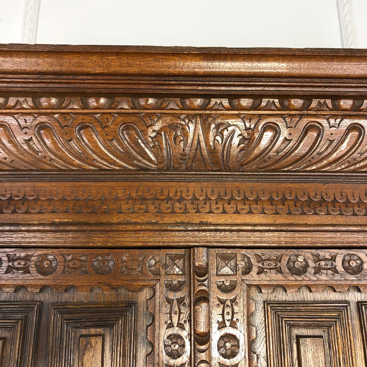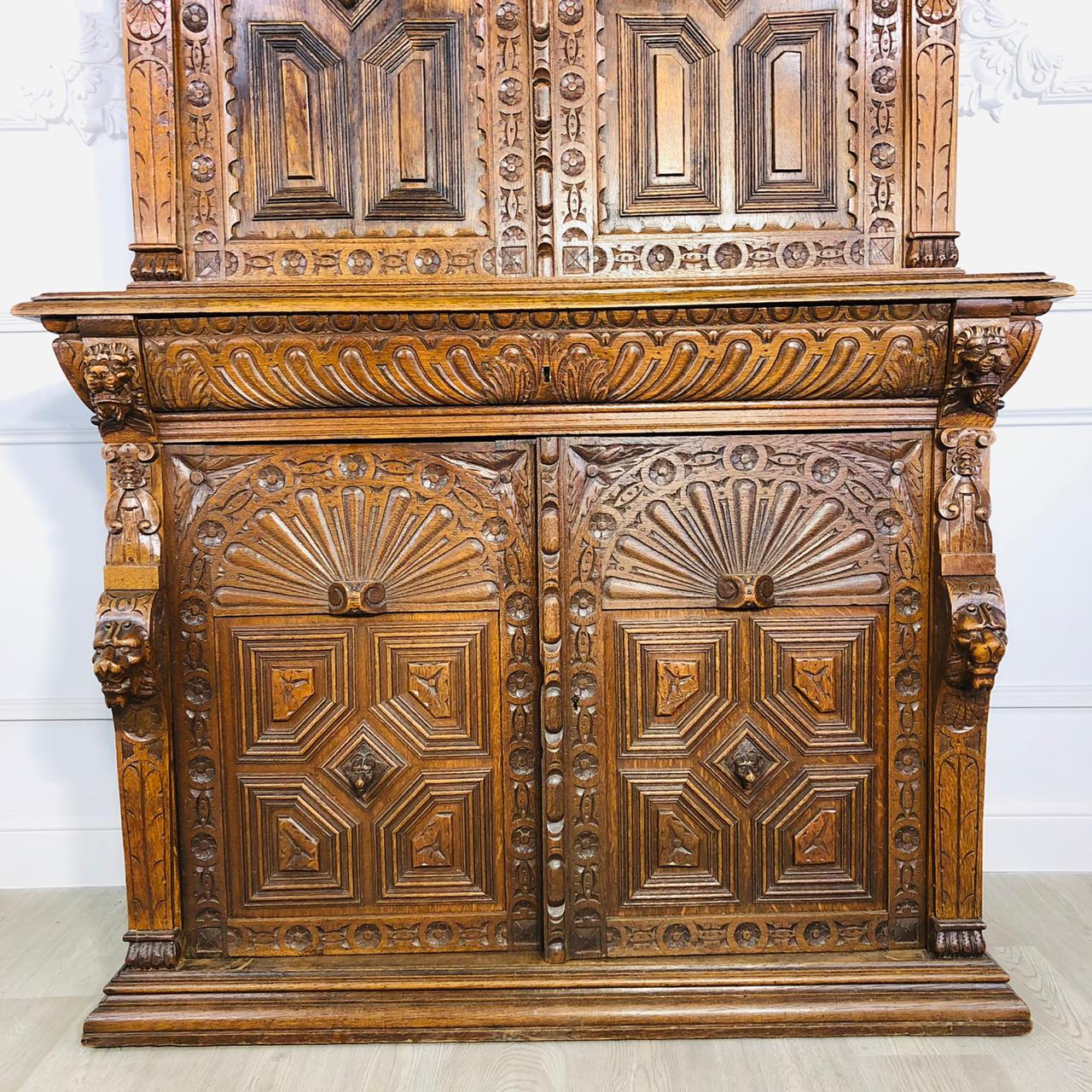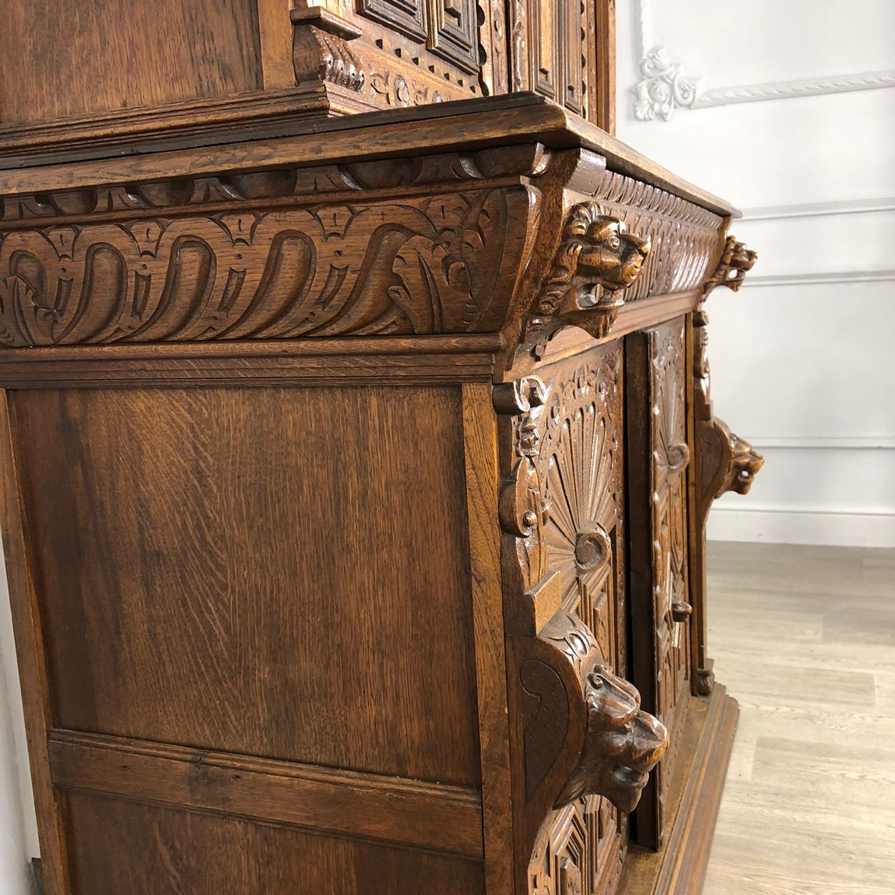 Дубовый буфет антикварный рубежа XIX-XX века, Бельгия. Выполнен из массива дуба, красивая резьба ручной работы. Размер 125х53х205h см.