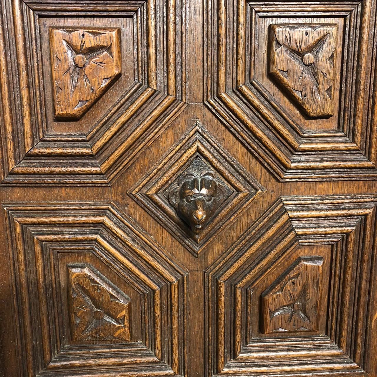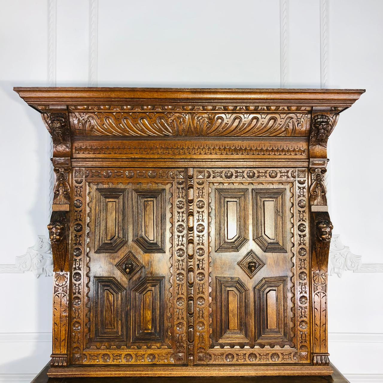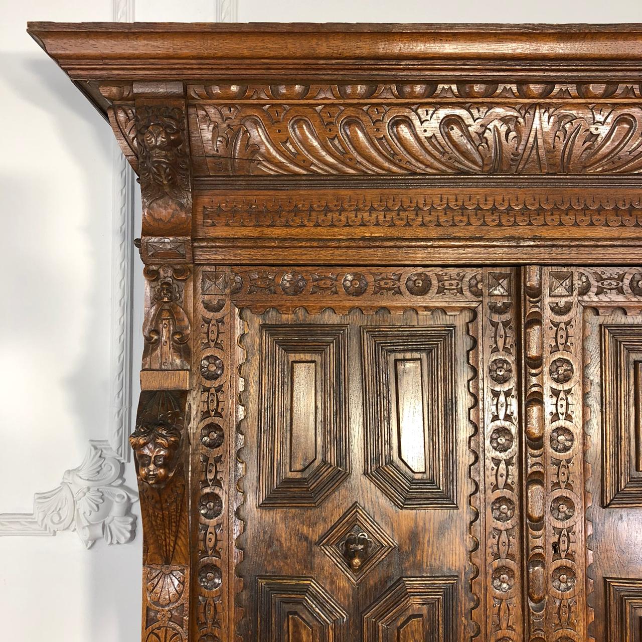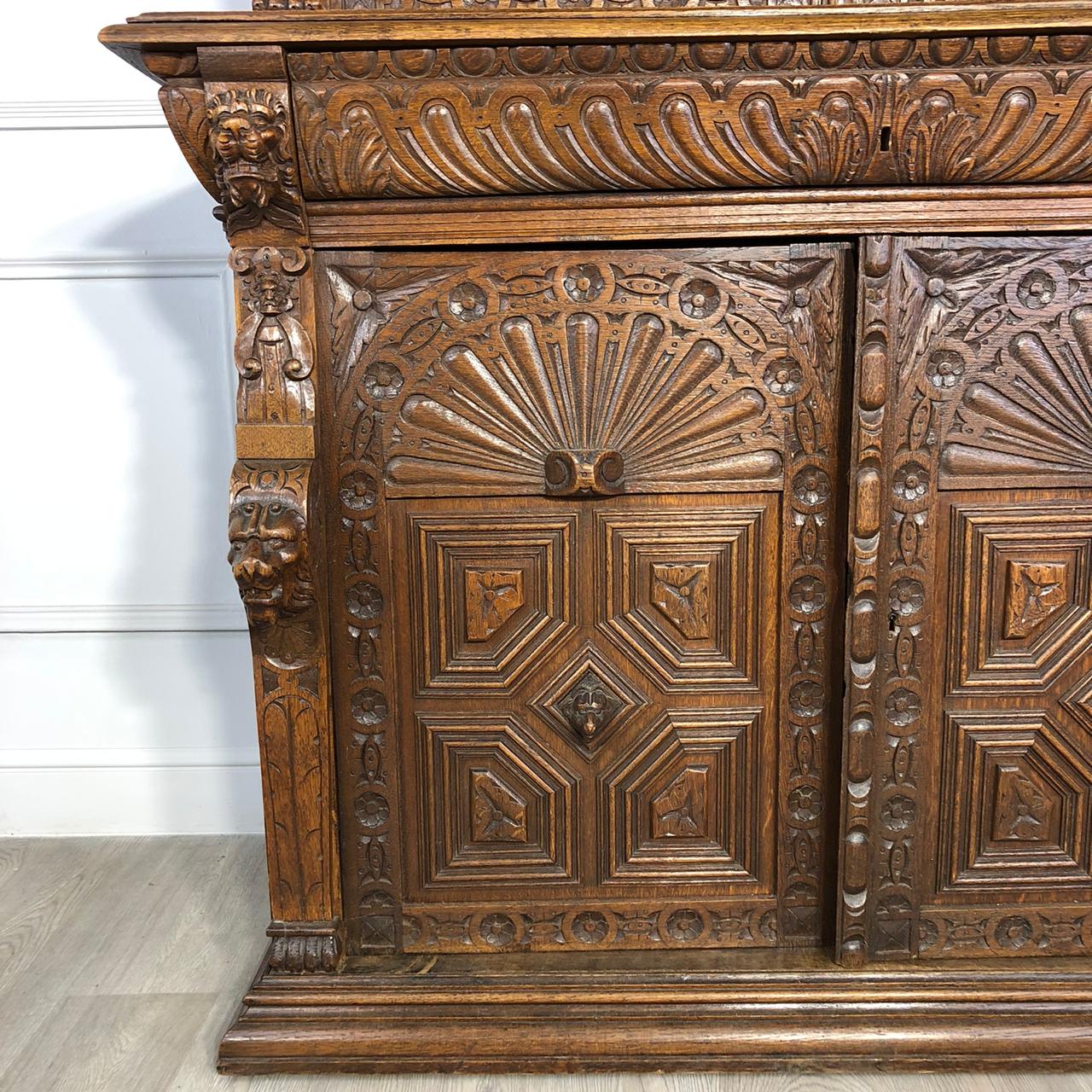 Дубовый буфет антикварный рубежа XIX-XX века, Бельгия. Выполнен из массива дуба, красивая резьба ручной работы. Размер 125х53х205h см.