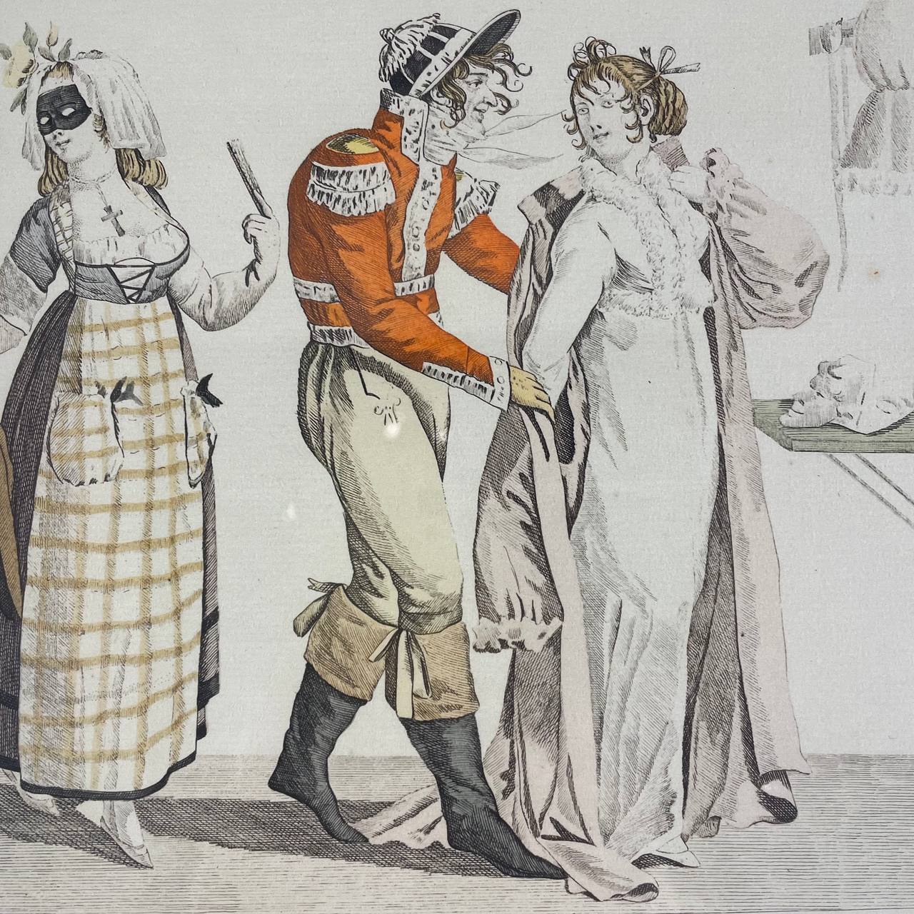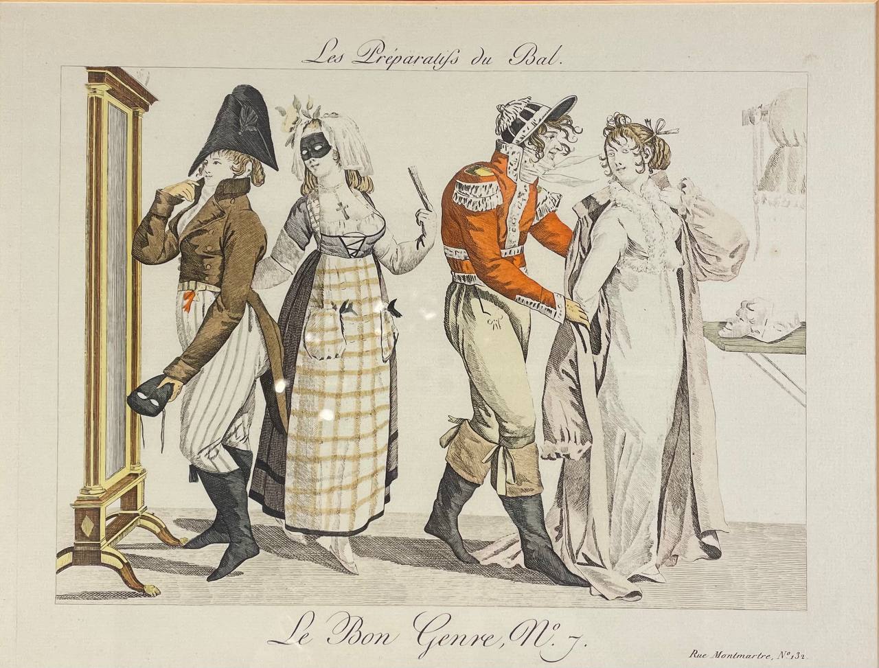 Эстамп «Подготовка к балу» начала XX века, Франция. Под стеклом, современное паспарту и рама. Размер 43х36,5 см