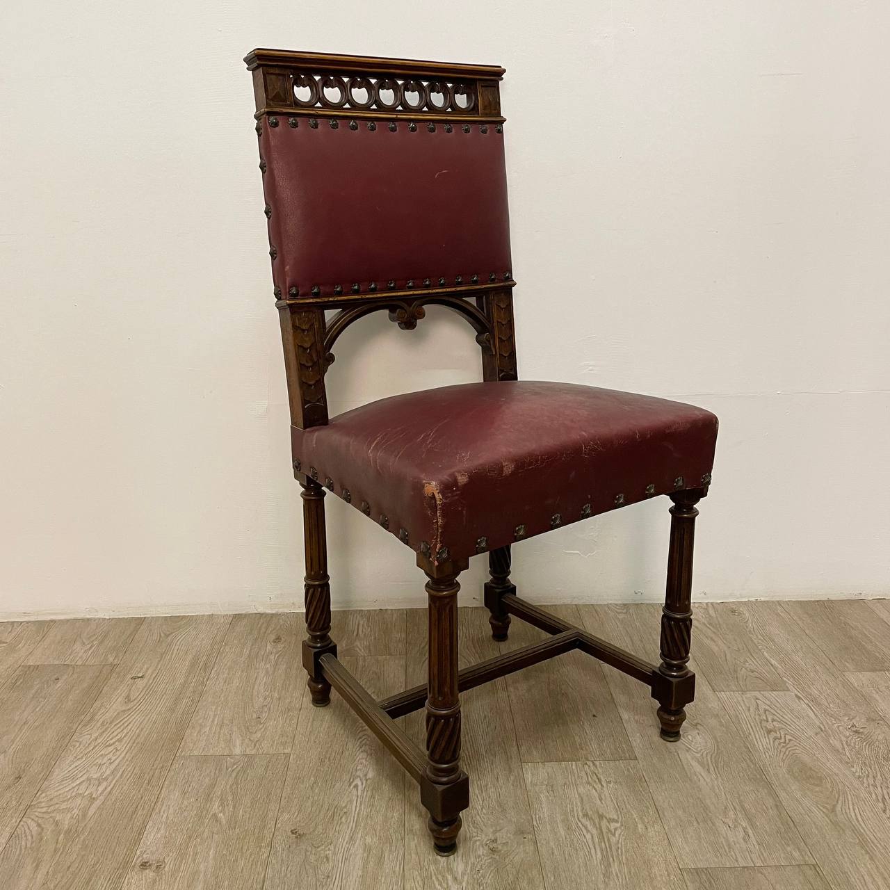 Гарнитур антикварных стульев 6 шт конца XIX века, Бельгия. Выполнены из массива ореха. Резьба ручной работы. Оригинальные фигурные гвозди. Размер 47х43х95h см