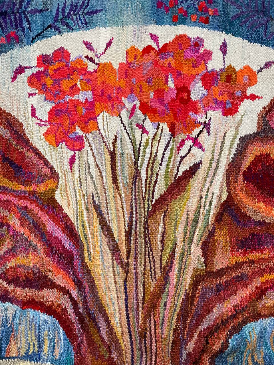 Гобелен «Жажда жизни» 2019 г., художник И.Тимченко. Ручное гладкое ткачество, шерсть, лен. Размер 210х115 см. Иван Алексеевич Тимченко родился в 1938 г. Рисовал с раннего детства. В 1962-1967 г. поступил в Краснодарский государственный педагогический институт на художественно-графический факультет. 1967 г. участие в выставке лучших работ студентов ВУЗов в Монреале. Затем, следующая выставка в 1975 году и множество последующих, принесших ему заслуженную популярность и подтверждение его высокого профессионального статуса. В 1982 г., после успешного участия в 1981 г. в выставке “Памятники истории и культуры в изображении советских художников”, он становится членом Московского Союза художников. С 1986 года работает в мастерских декоративно-прикладного искусства художественного Фонда РСФСР при московском комбинате декоративно-прикладного искусства по изготовлению гобеленов . Многие его работы находятся в частных и музейных собраниях разных стран.