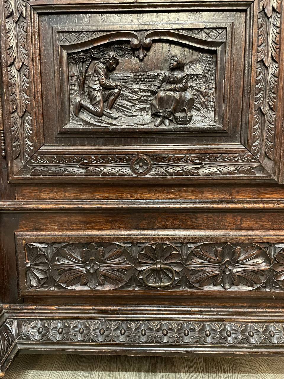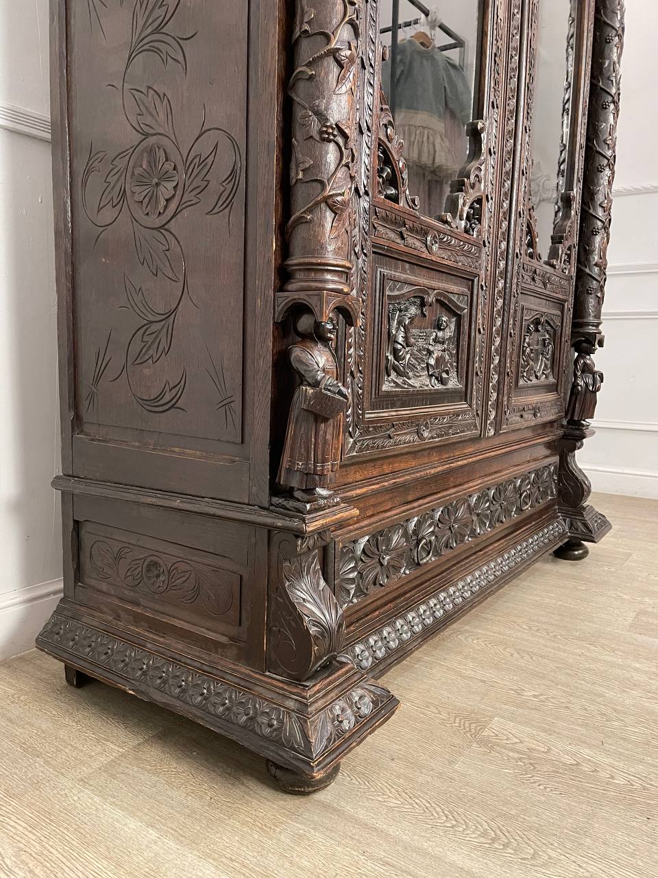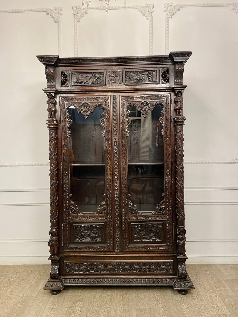 Книжный шкаф в Бретонском стиле конца XIX века, Франция. Выполнен из массива дуба. Богатая резьба в стиле северной части Франции. Внутри две оригинальные полки. 151х58х239h см.