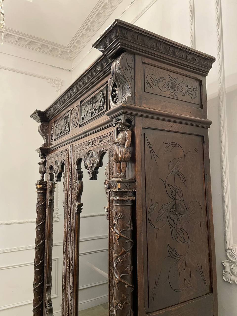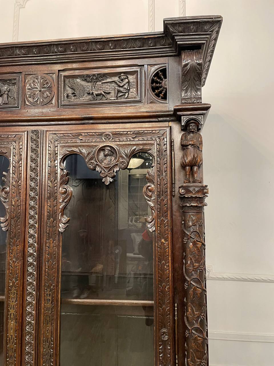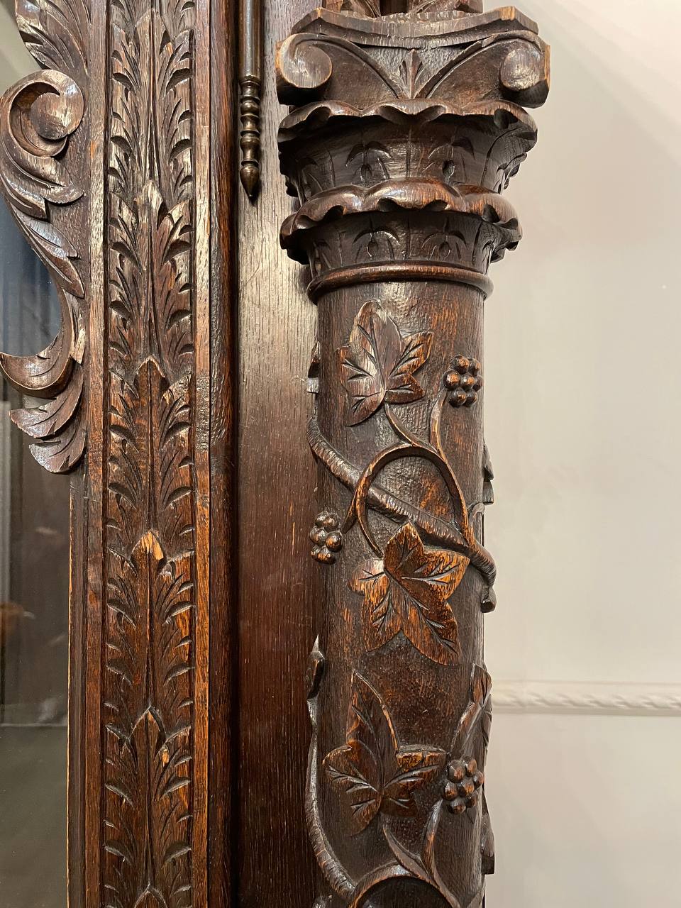 Книжный шкаф в Бретонском стиле конца XIX века, Франция. Выполнен из массива дуба. Богатая резьба в стиле северной части Франции. Внутри две оригинальные полки. 151х58х239h см.