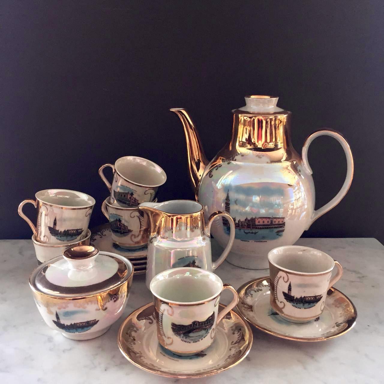 Кофейный сервиз антикварный, 15 предметов, вторая половина XX века.
