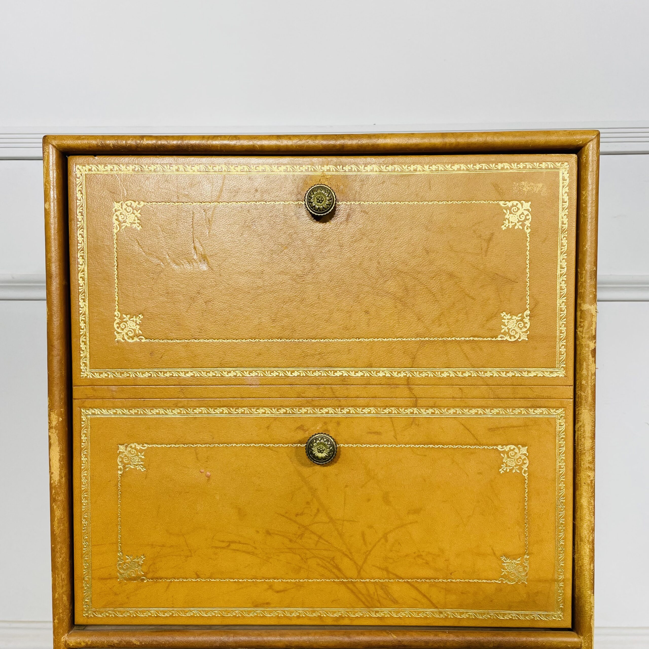 Комод антикварный кожаный середины XX века.