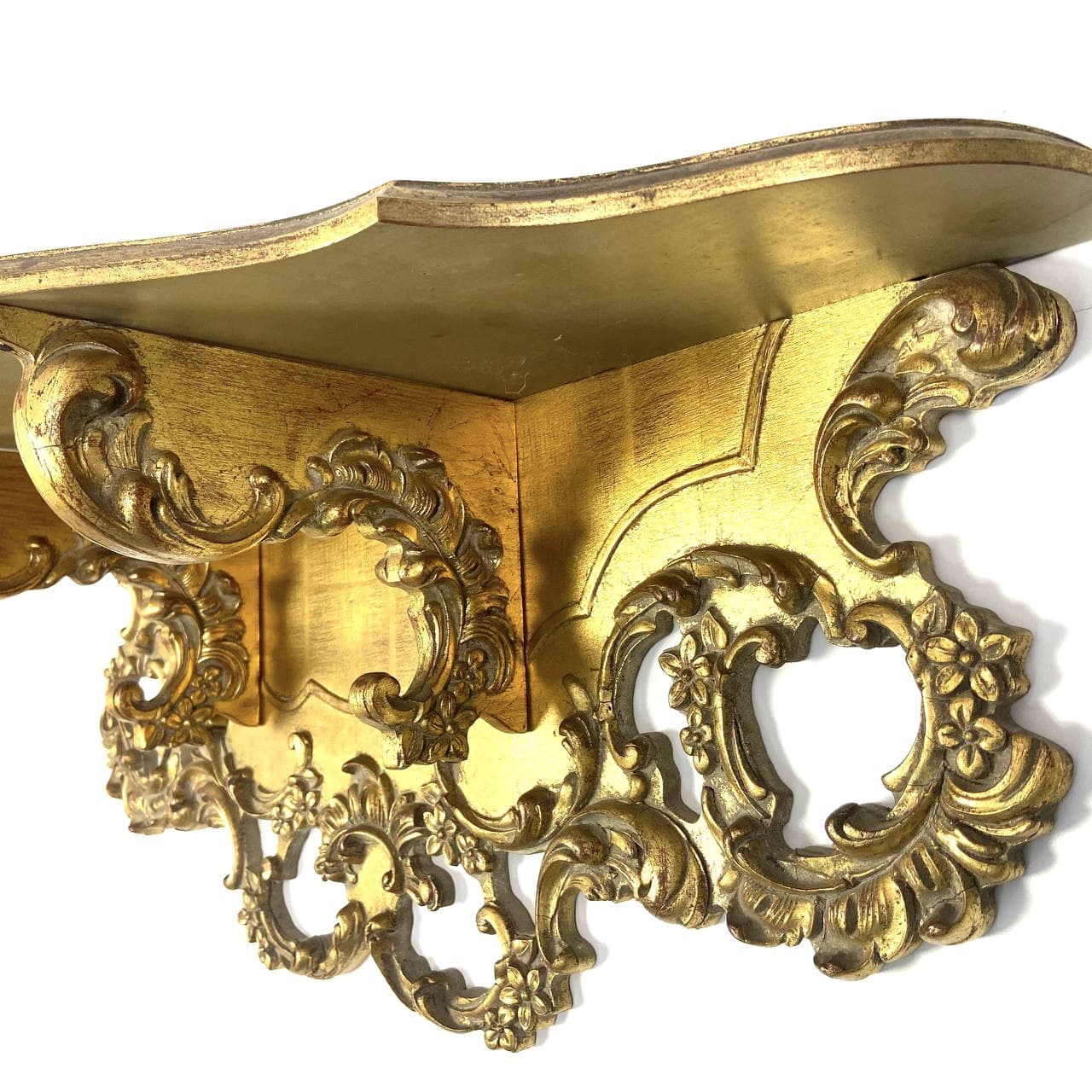 Консоль антикварная подвесная резная начала ХХ века, Франция. Дерево, ручная резьба, сусальное золото. Размеры: 74х27х29h см.