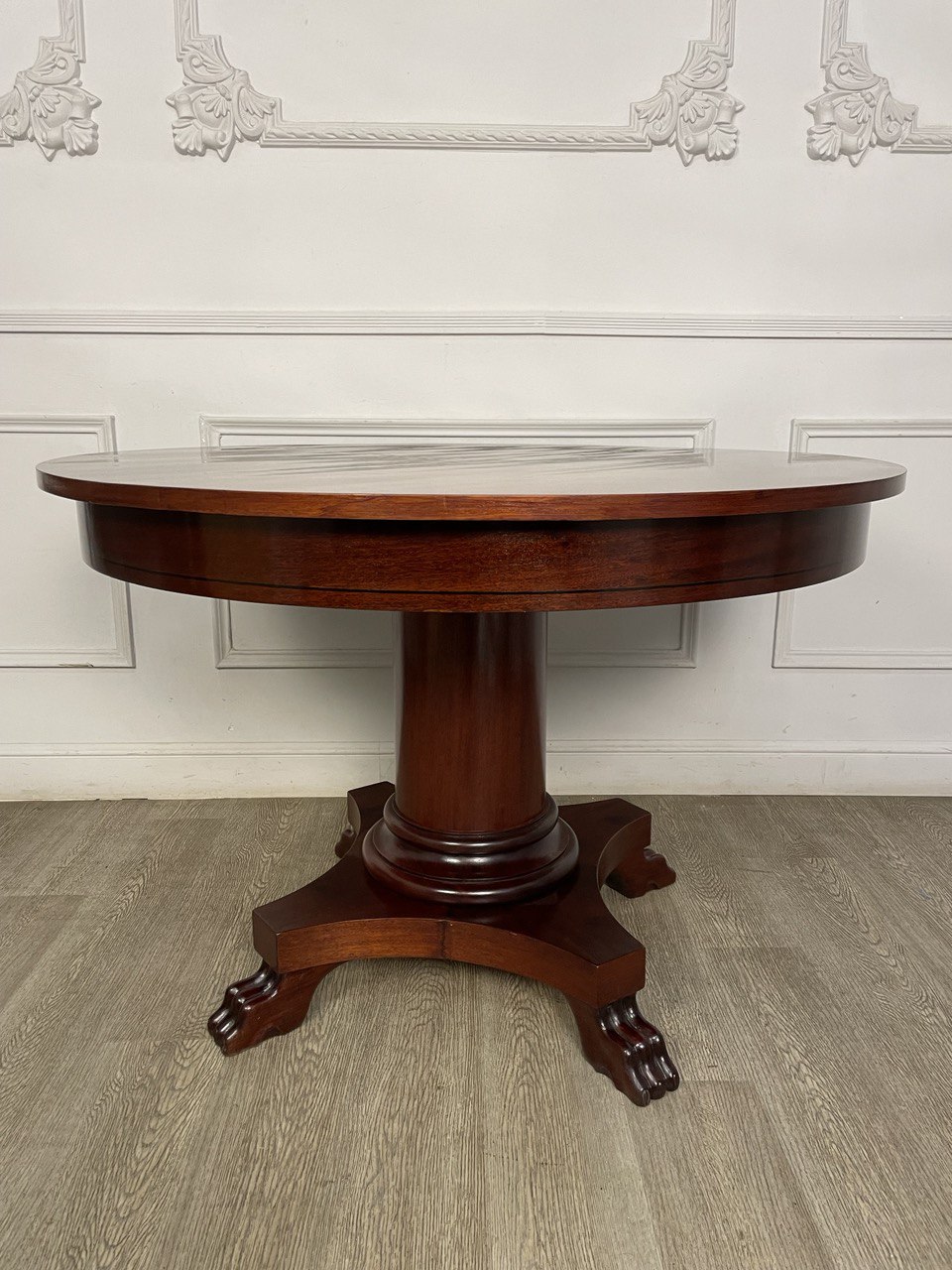 Круглый стол на одной ноге первой половины XX века, Karl Johan, Швеция. Выполнен из красного дерева. Диаметр 110 см Высота 75 см