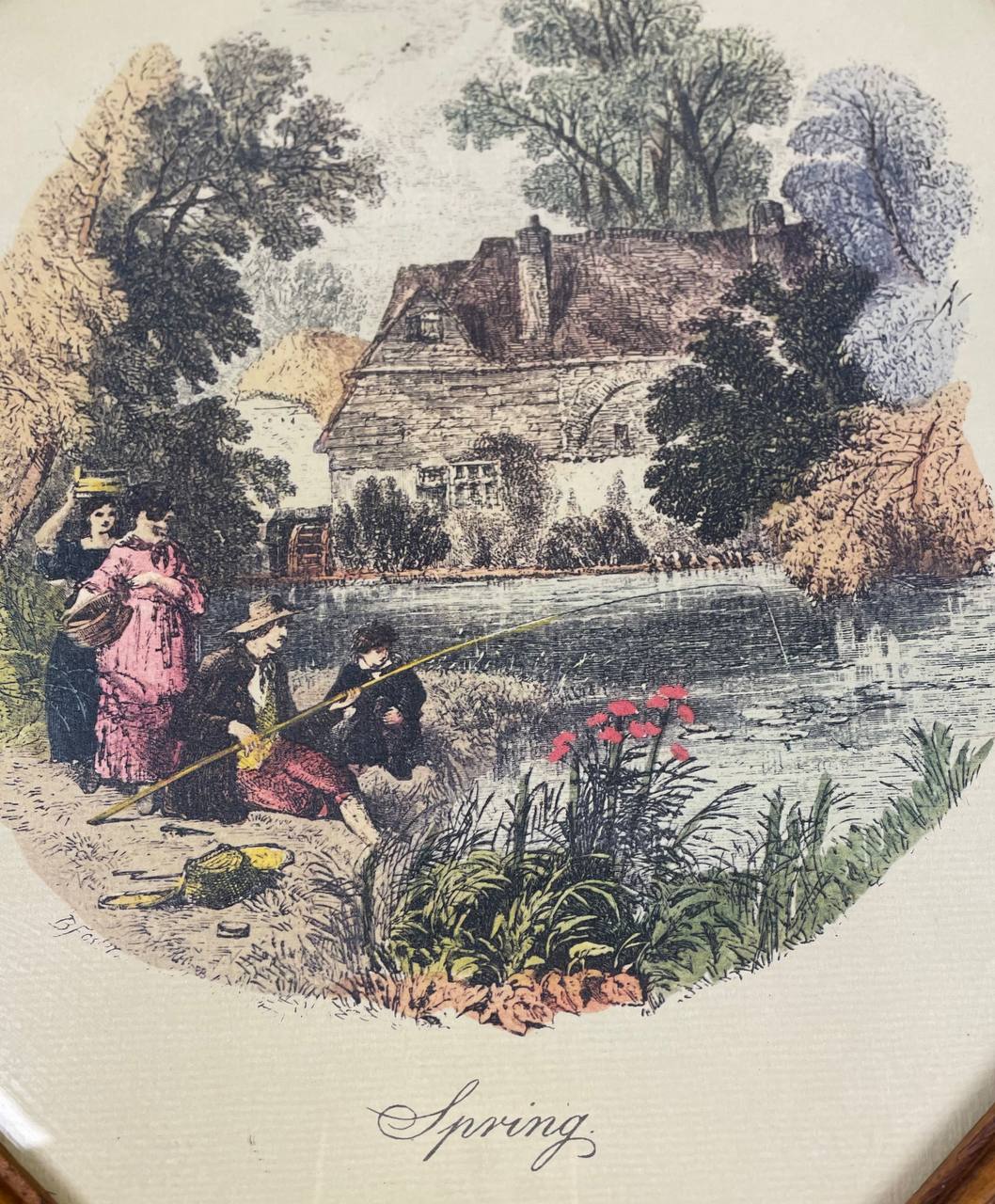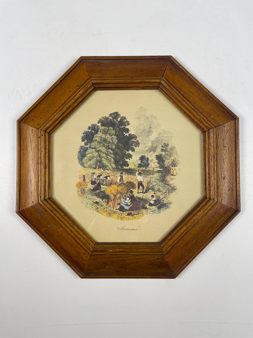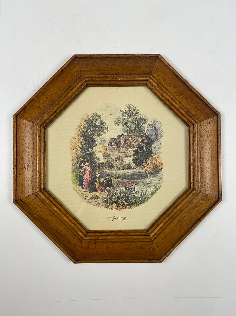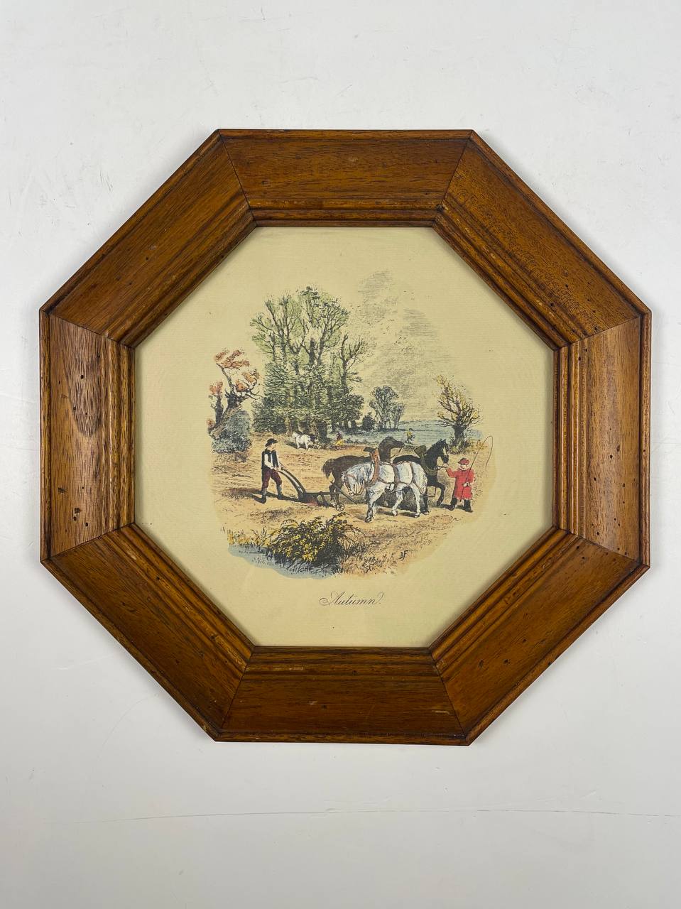 Три литографии (Весна, Лето, Осень) из серии «Времена года» под стеклом в оригинальных деревянных рамах, 1960х годов, Европа.