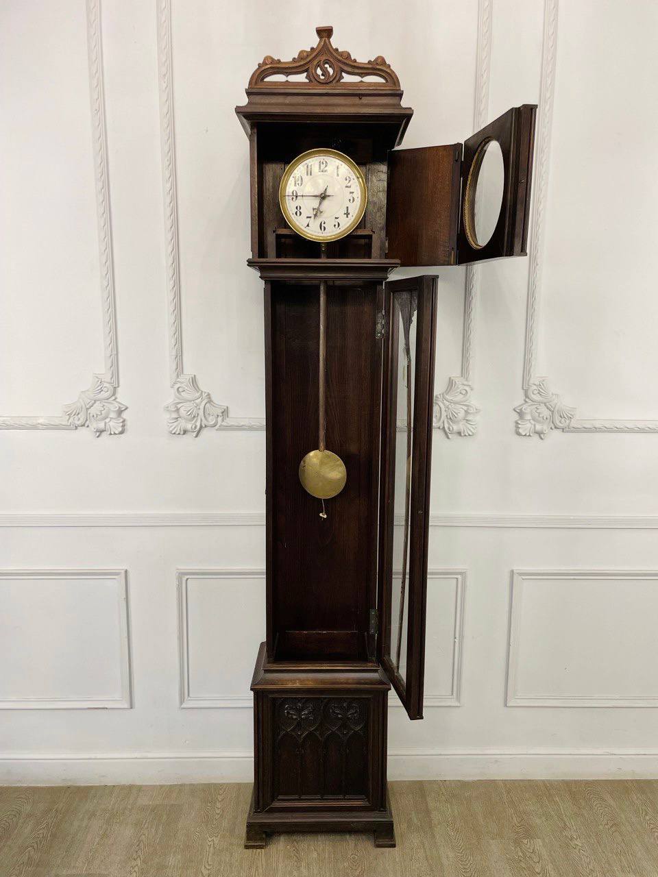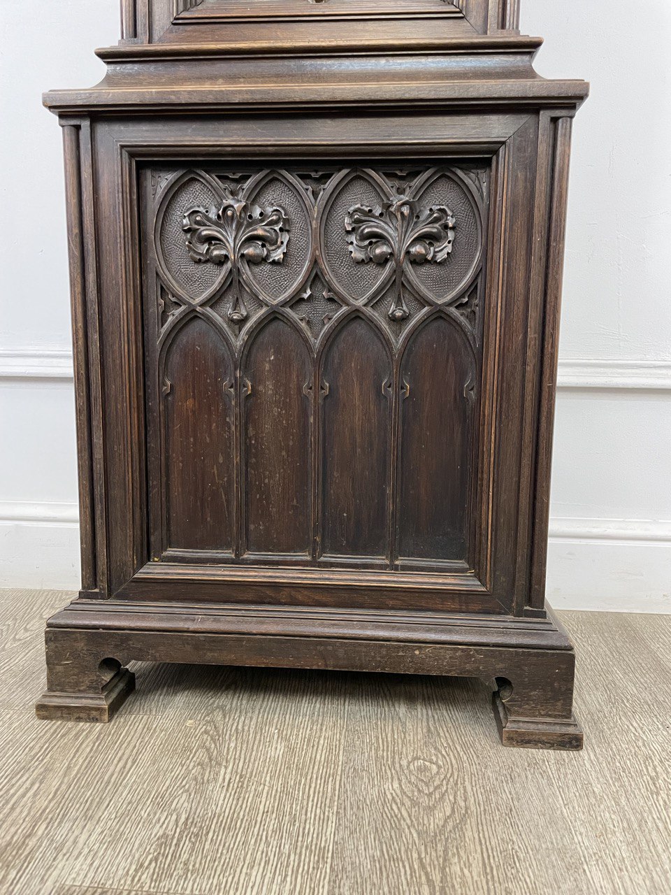 Напольные антикварные часы. Напольные часы Romanet Morbiek XIX века в готическом стиле, Франция. Выполнены из массива ореха. Ширина 48 см Глубина 31 см Высота 237 см