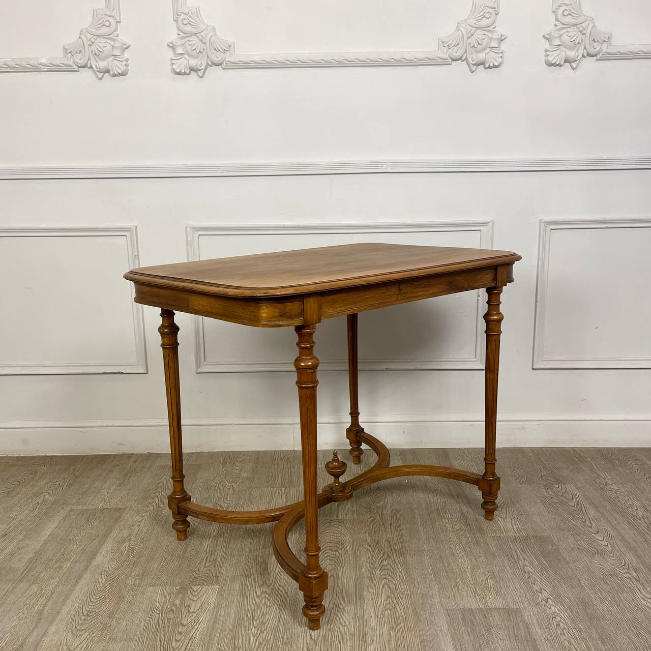 Антикварный небольшой стол Европа, Франция. Выполнен из массива ореха. Изящный и лаконичный. Размер 90х60х73h см.