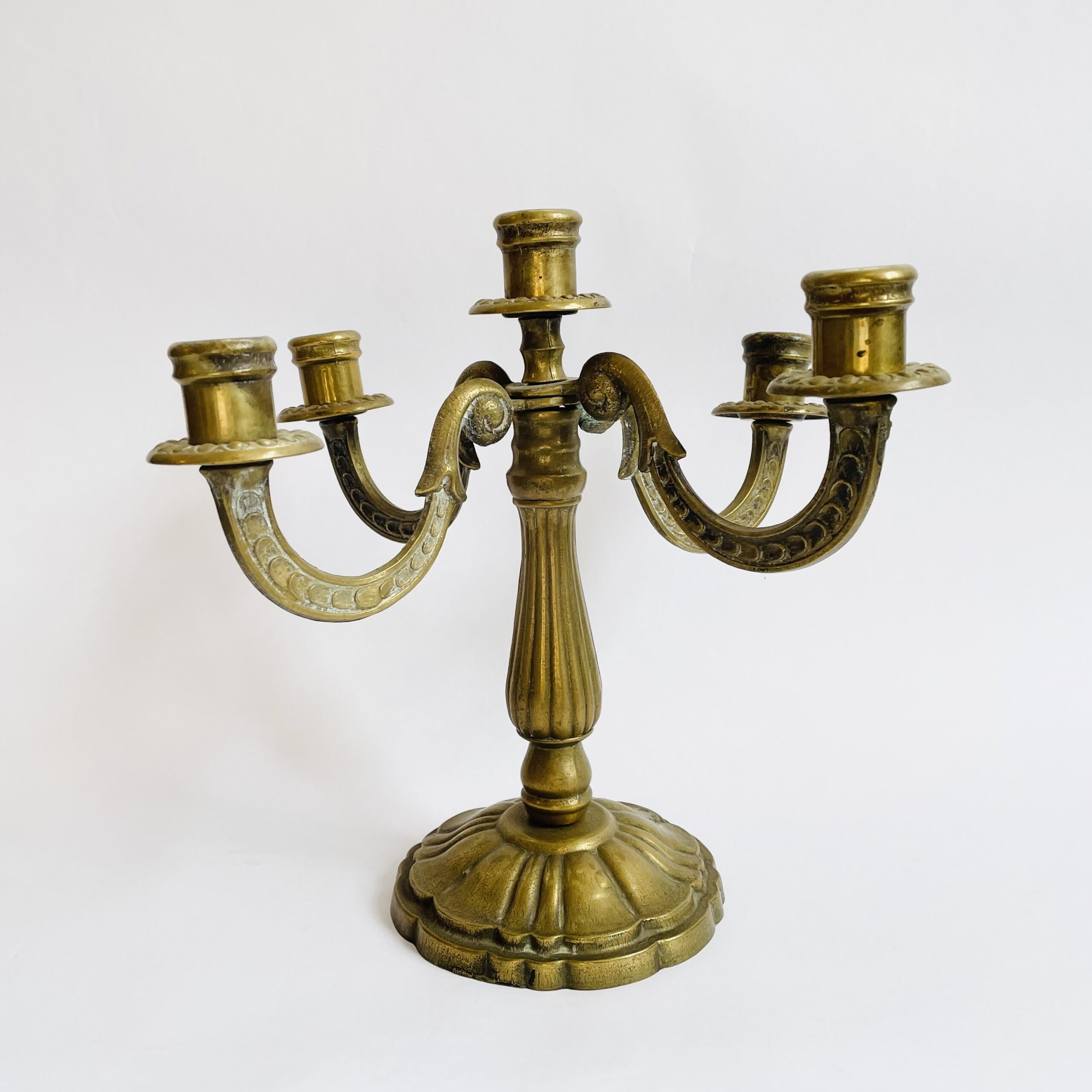 Пара антикварных бронзовых подсвечников начала XX века в стиле Ар Деко Франция. Каждый подсвечник на 5 свечей. Размер 28х25h см.