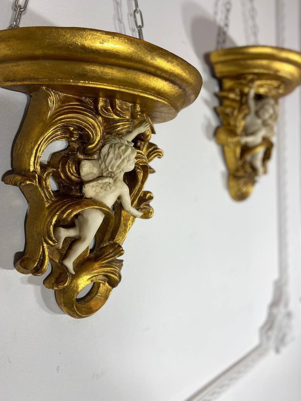 Пара консолей настенных декоративных с фигурками путти первой половины XX века.