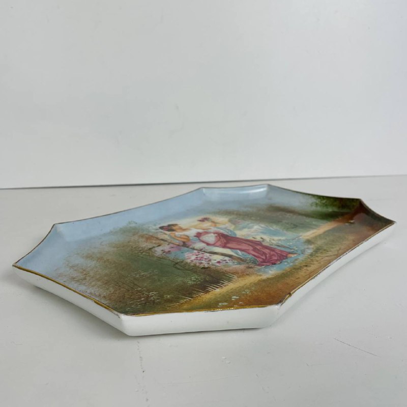 Поднос антикварный Limoges начала XX века , Франция. Роспись по фарфору. Размер 15х25 см.