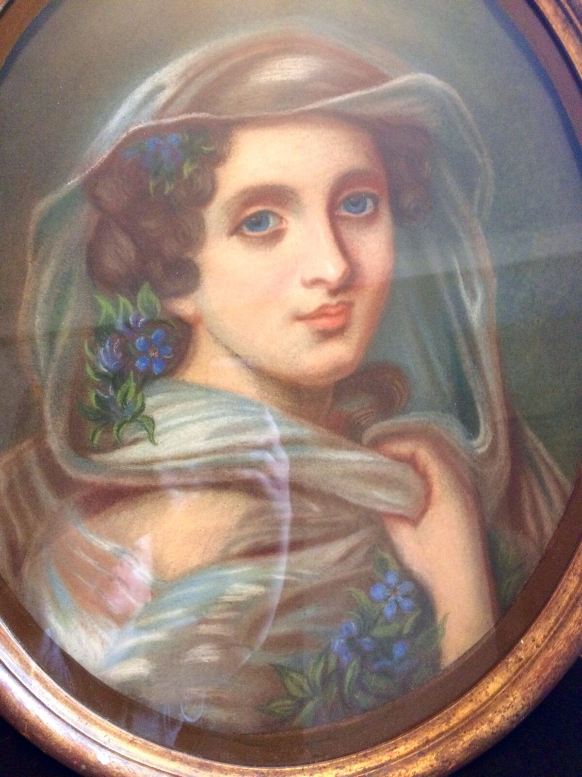 Антикварный фарфоровый пласт или картина на фарфоре «Девушка...