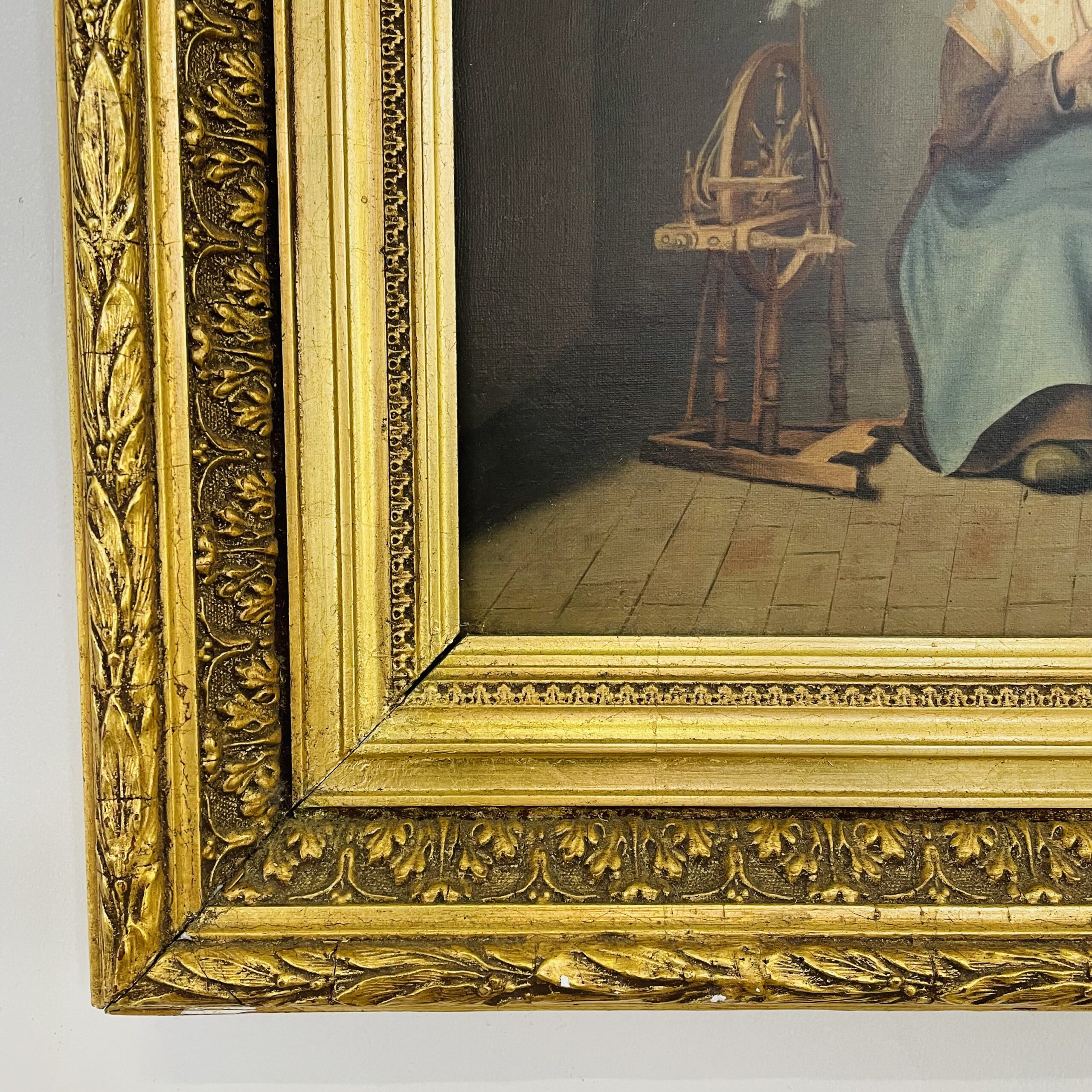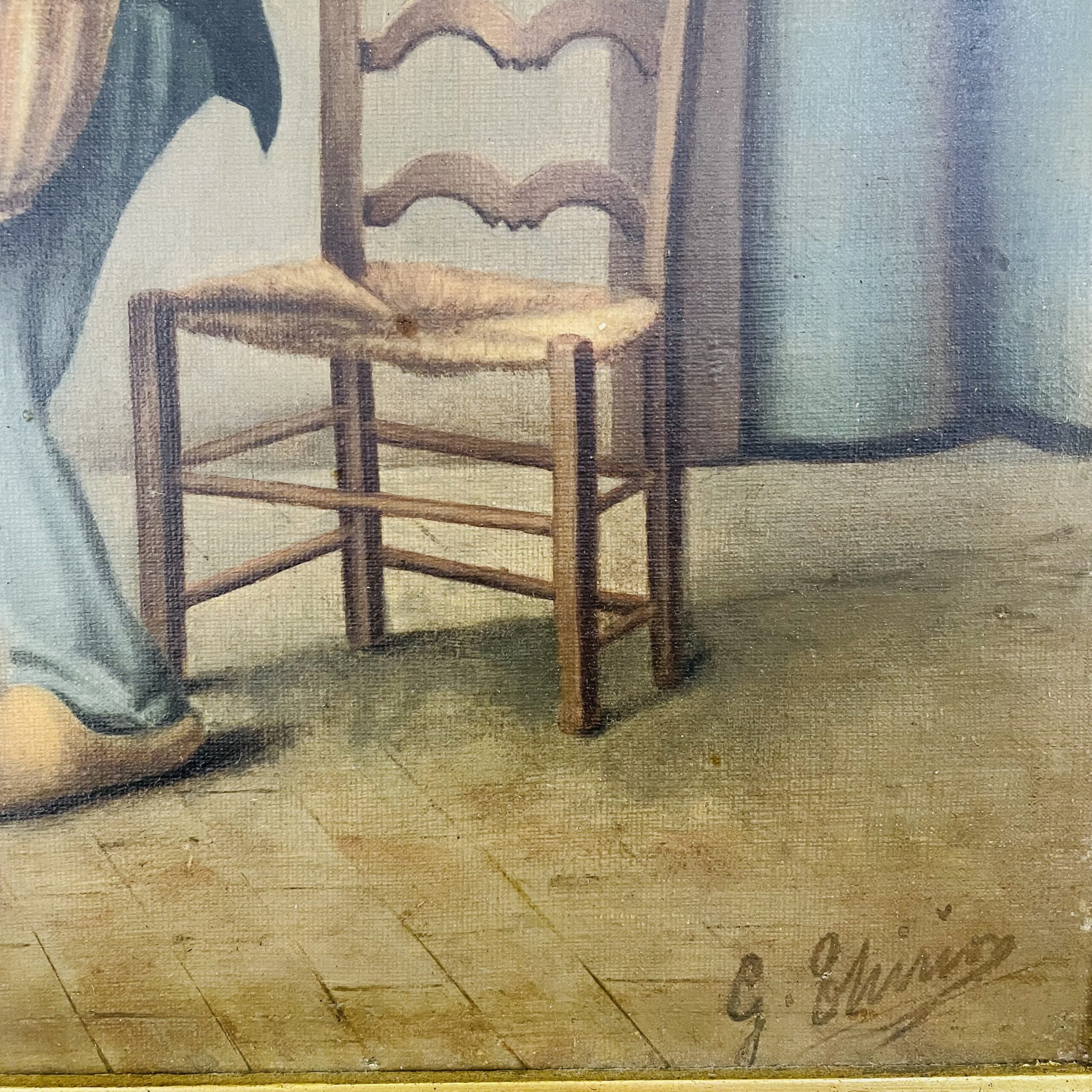 Очень милая, интерьерная работа первой половины XX века из Европы. Холст, масло. Стоит подпись автора. Оригинальный багет. Размер 62х54 см.