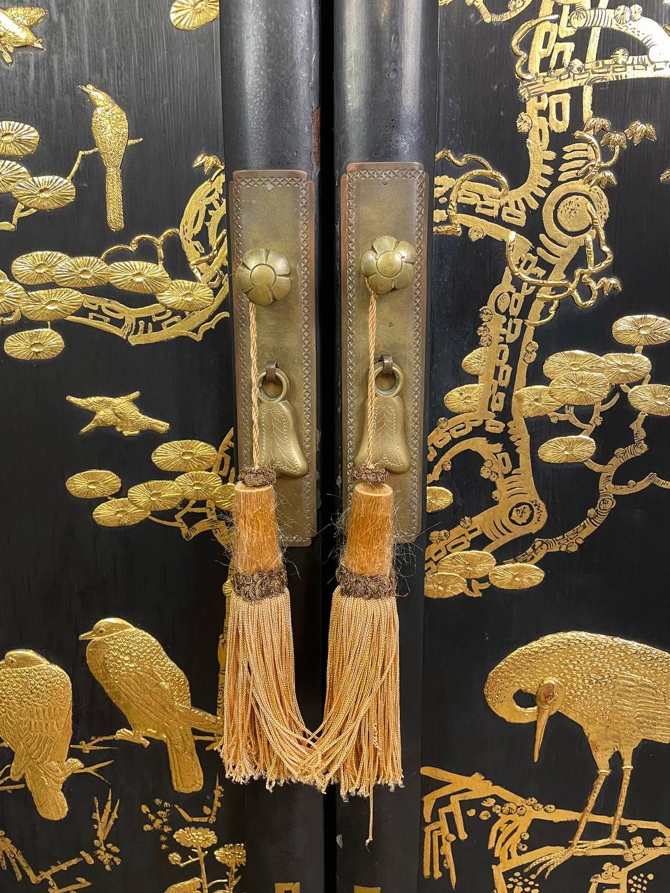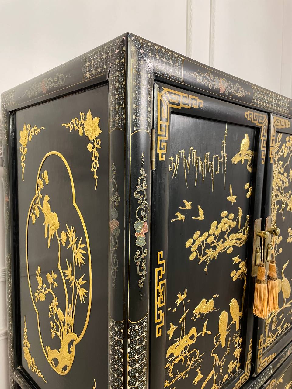 Шкаф в стиле Шинуазри середины XX века, Китай. Предназначался под TV. Ручная роспись. Оригинальная фурнитура из латуни. Размер 97х59х150h см.
