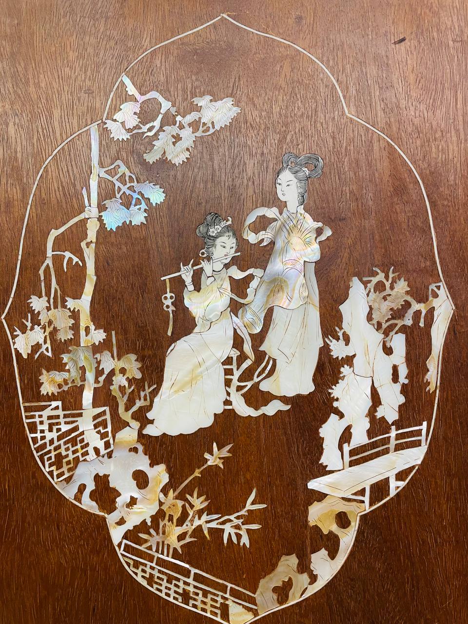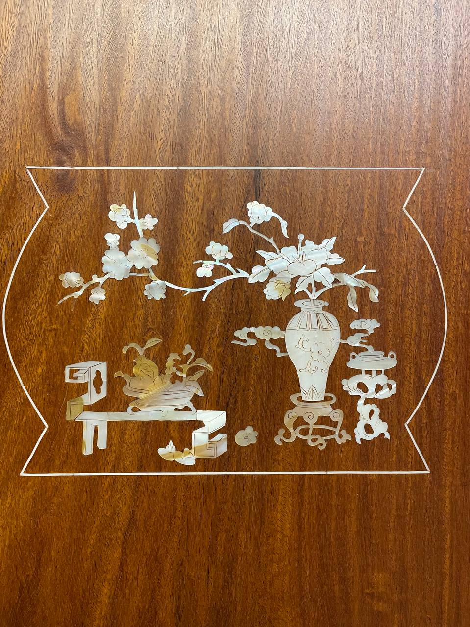 Шкаф в стиле Шинуазри, Китай, начало XX века. Выполнен из красного дерева и натурального перламутра. Размер 91х46х122h см.