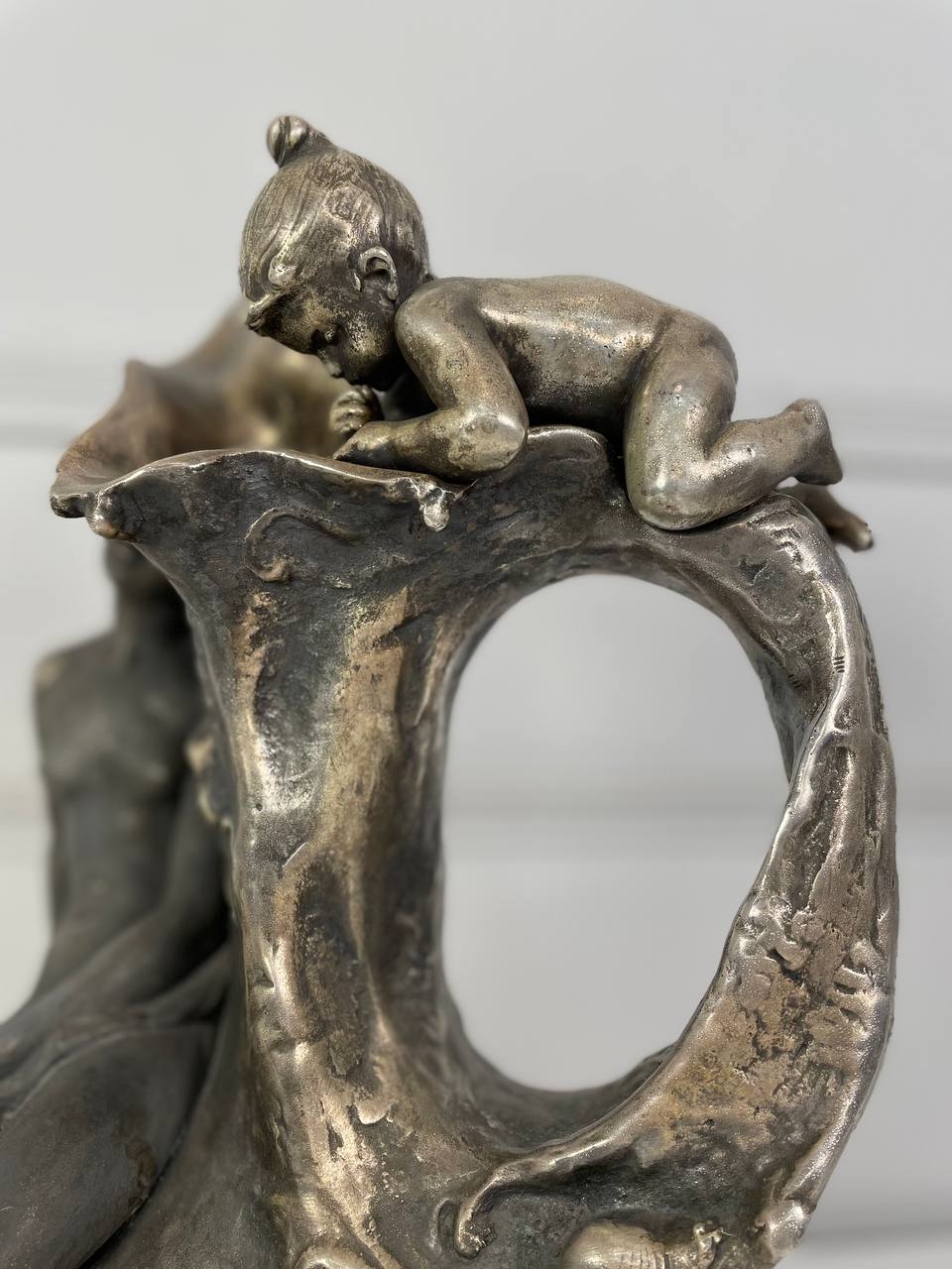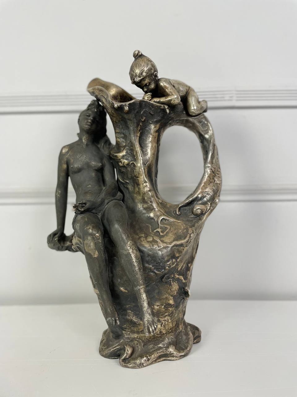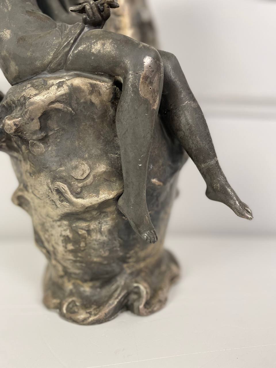 Скульптура в стиле Ар-Нуво, 1900-1920 гг, Франция. Серебрение. Стоит подпись скульптора. Размер 30х25х44h см.