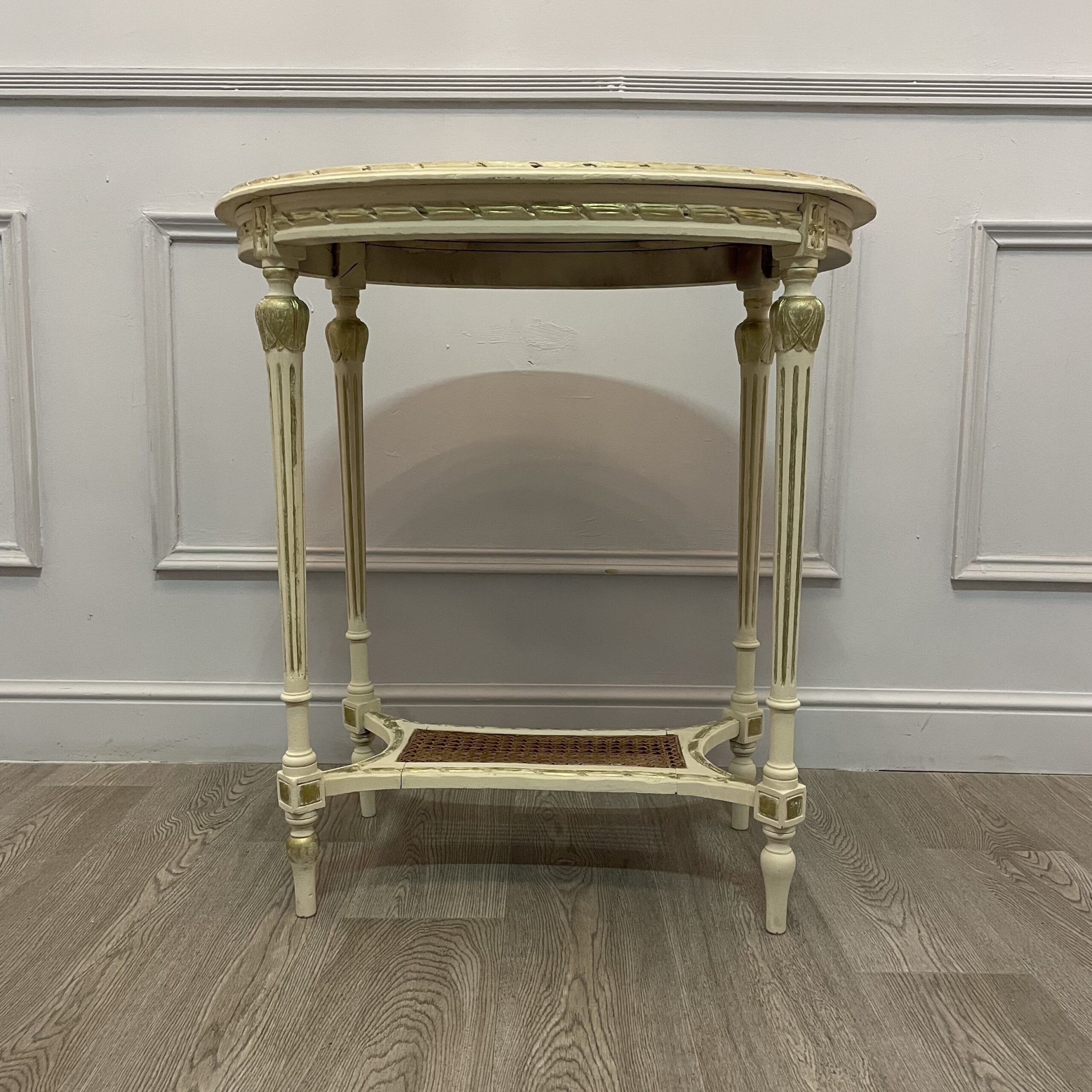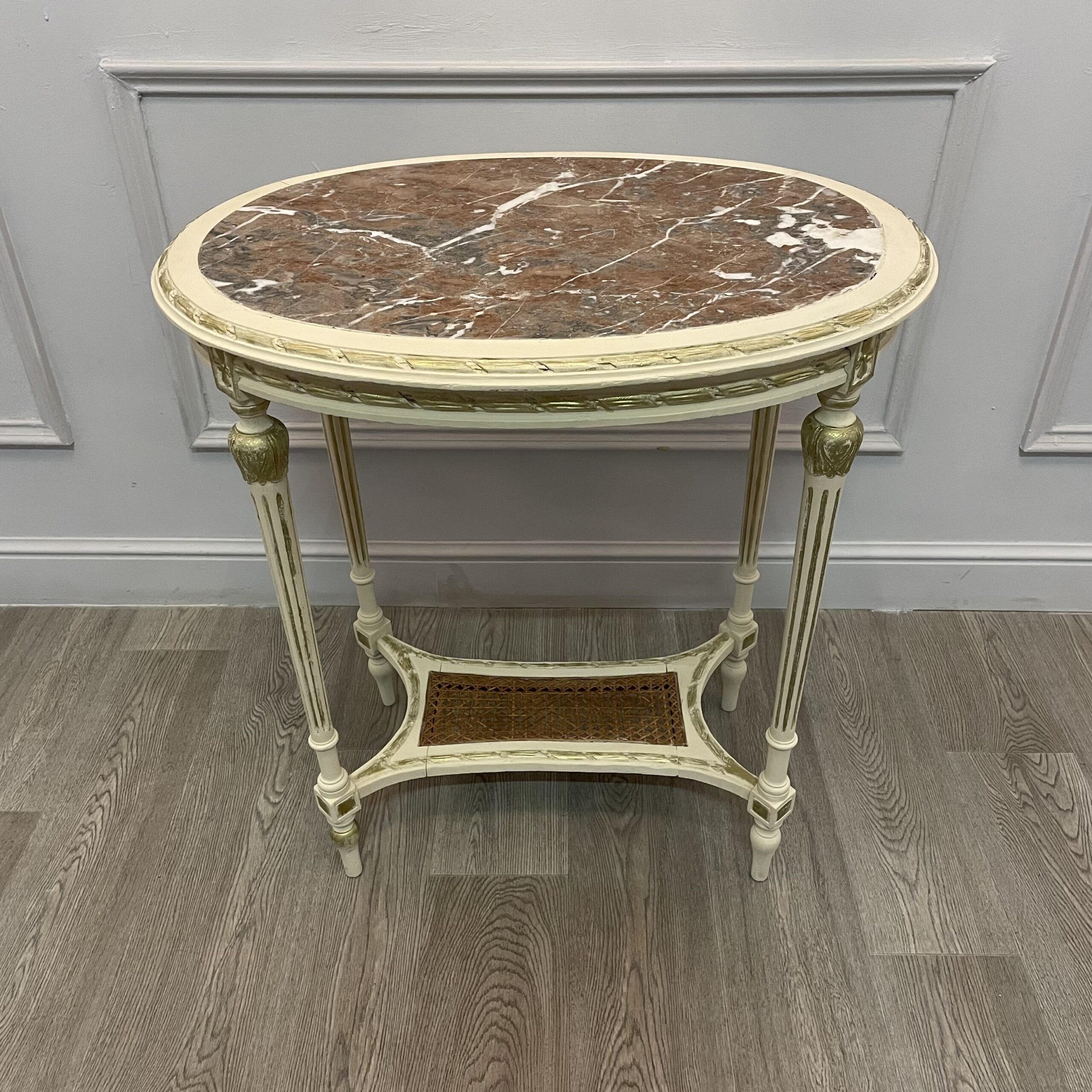Размеры столика: 70х50х75h см Родная позолота и мрамор, ручная резьба, ротанговая вставка-полочка. Столик в прекрасной сохранности.
