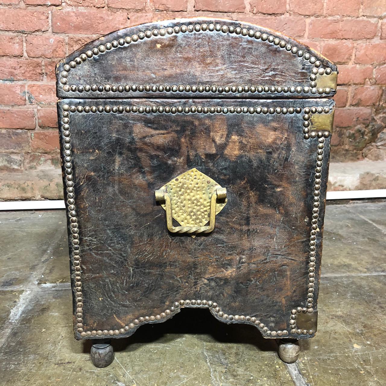 Сундук антикварный первой половины XX века, Европа. Выполнен из дерева, обтянут оригинальной, натуральной кожей. Оригинальная латунная фурнитура. Размер 66х39х55h см.