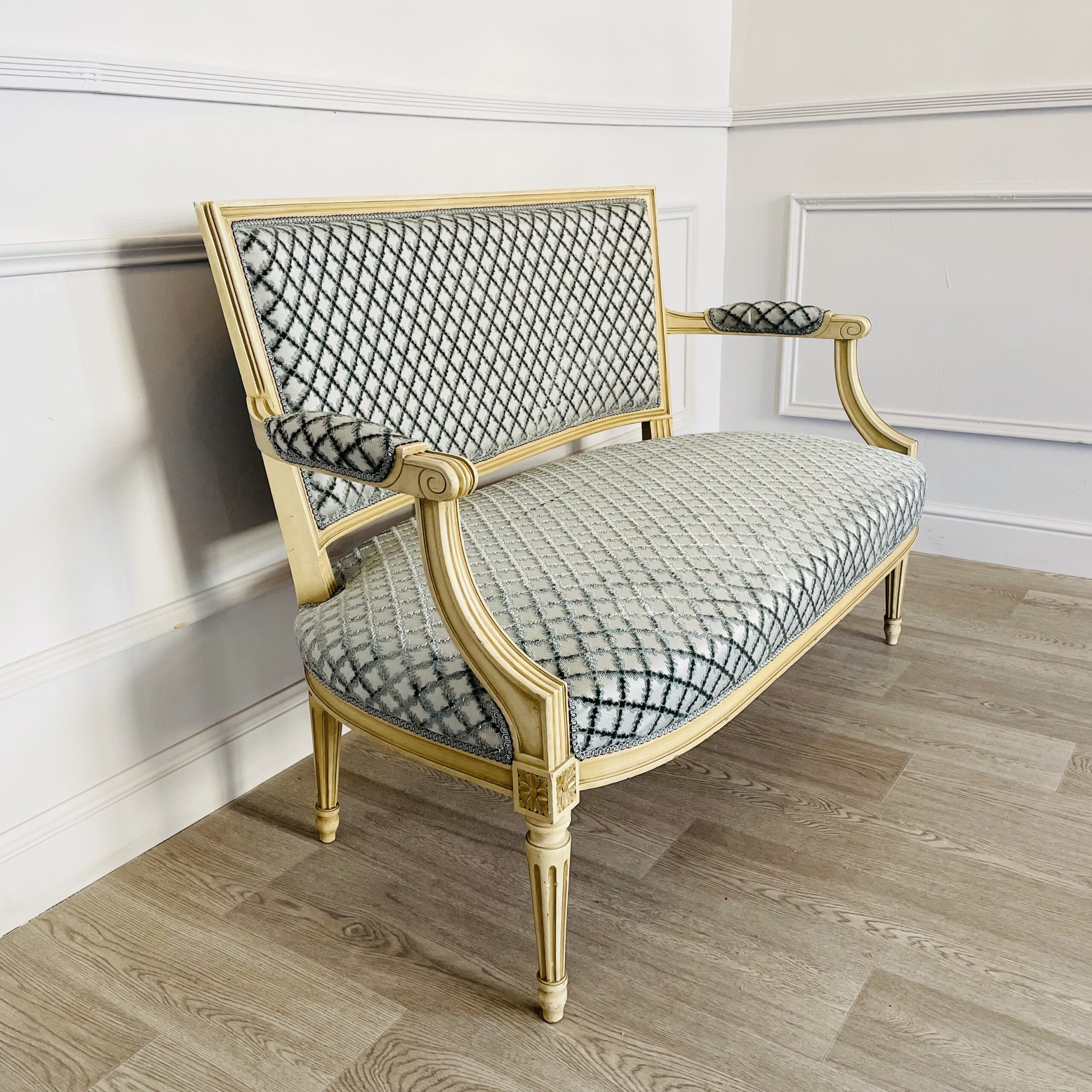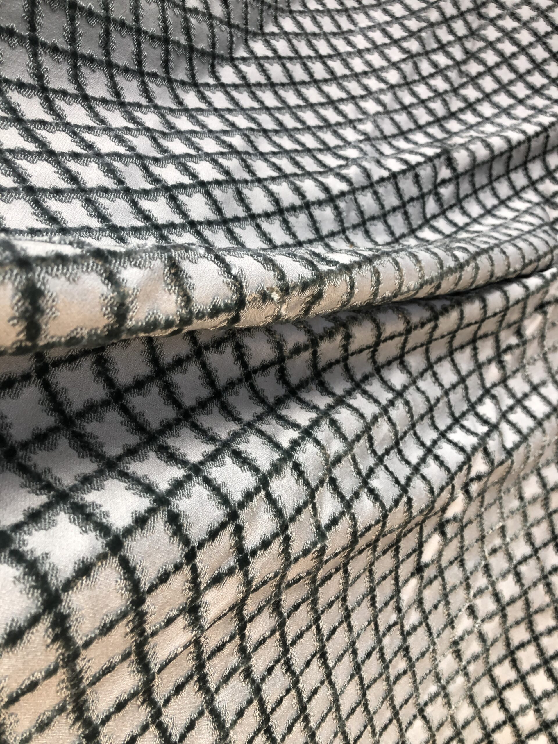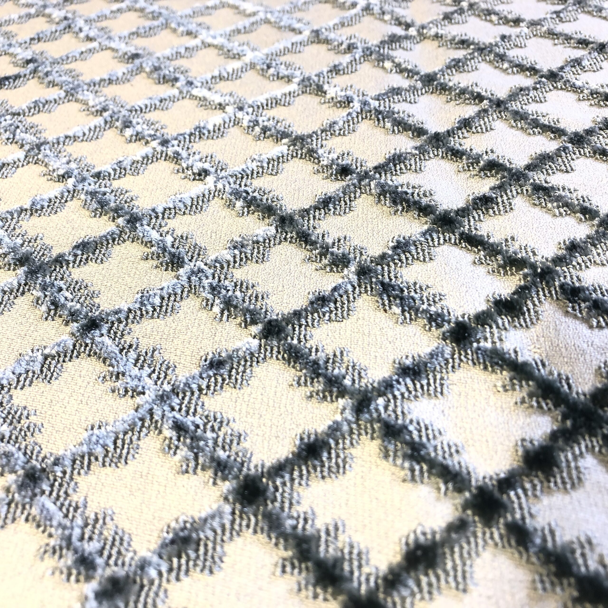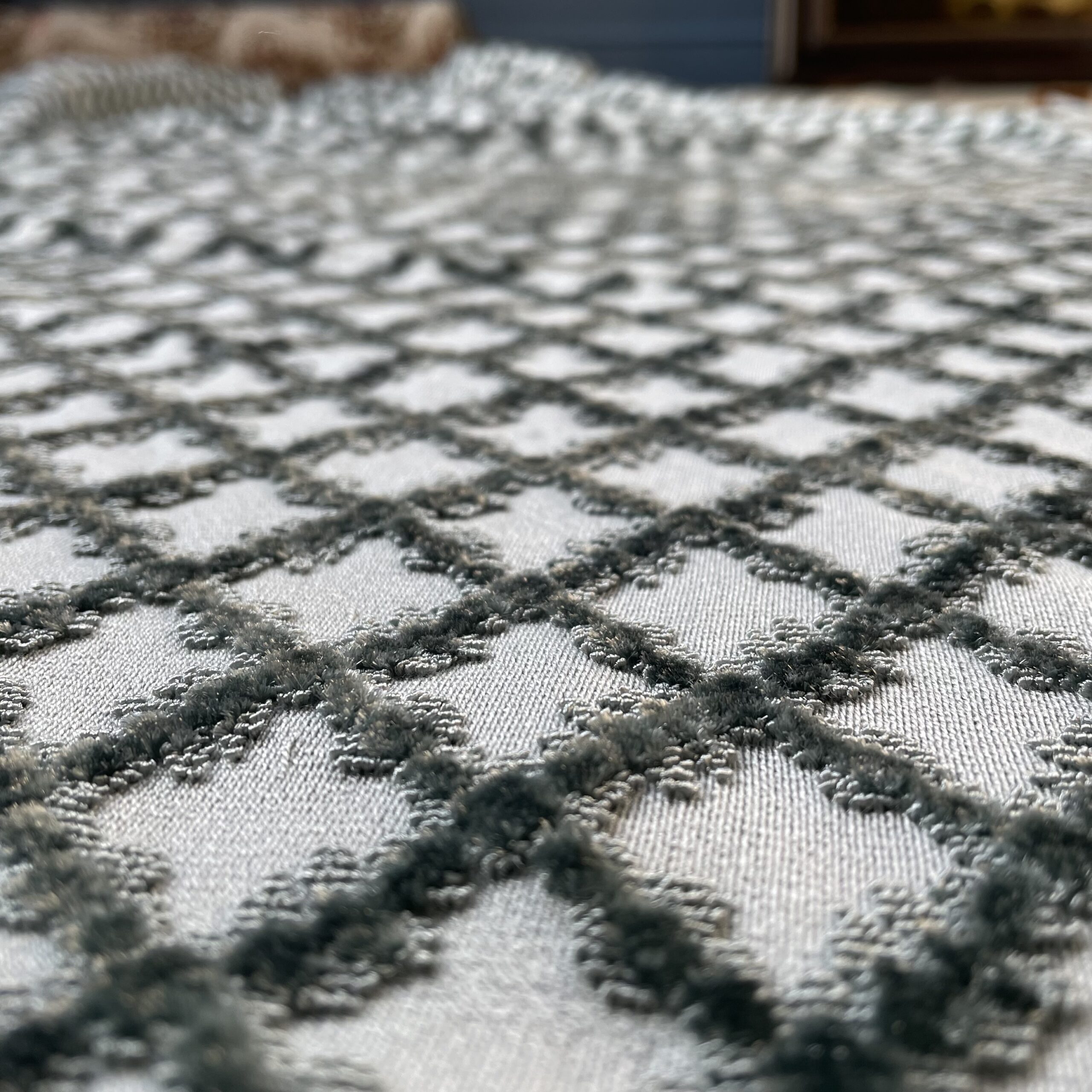 Серо-голубой велюр с ромбами для перетяжки мебели. Произведен в 1950-е годы во Франции. Размер: 130х 420 см. Цена за метр.