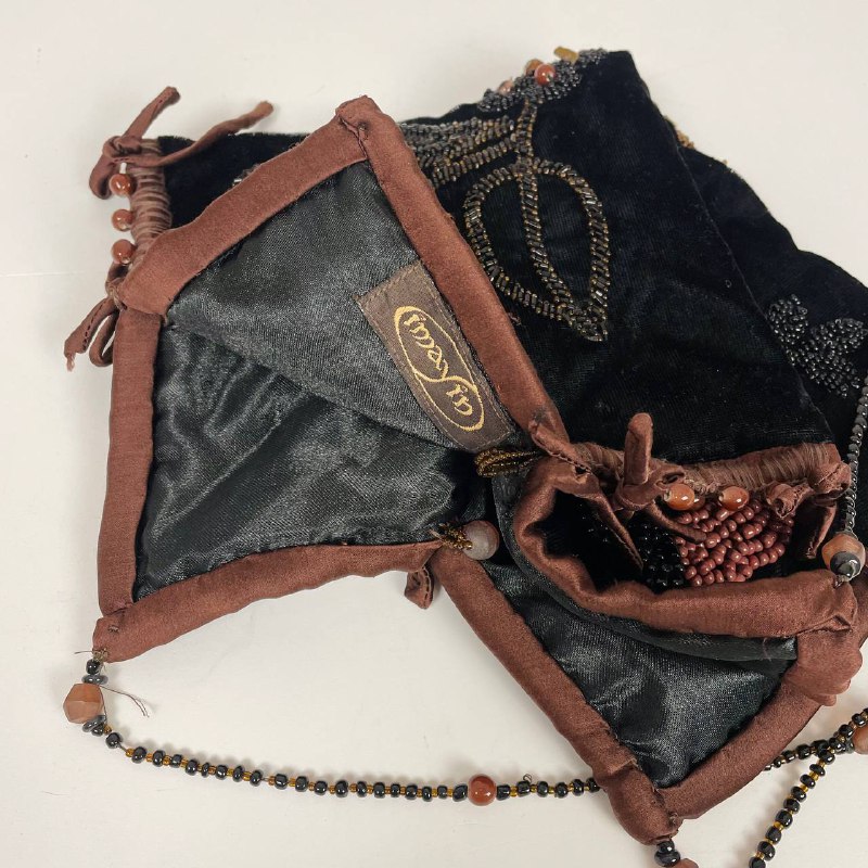 Велюровая винтажная сумочка с ручной вышивкой бисером и натуральными камнями.