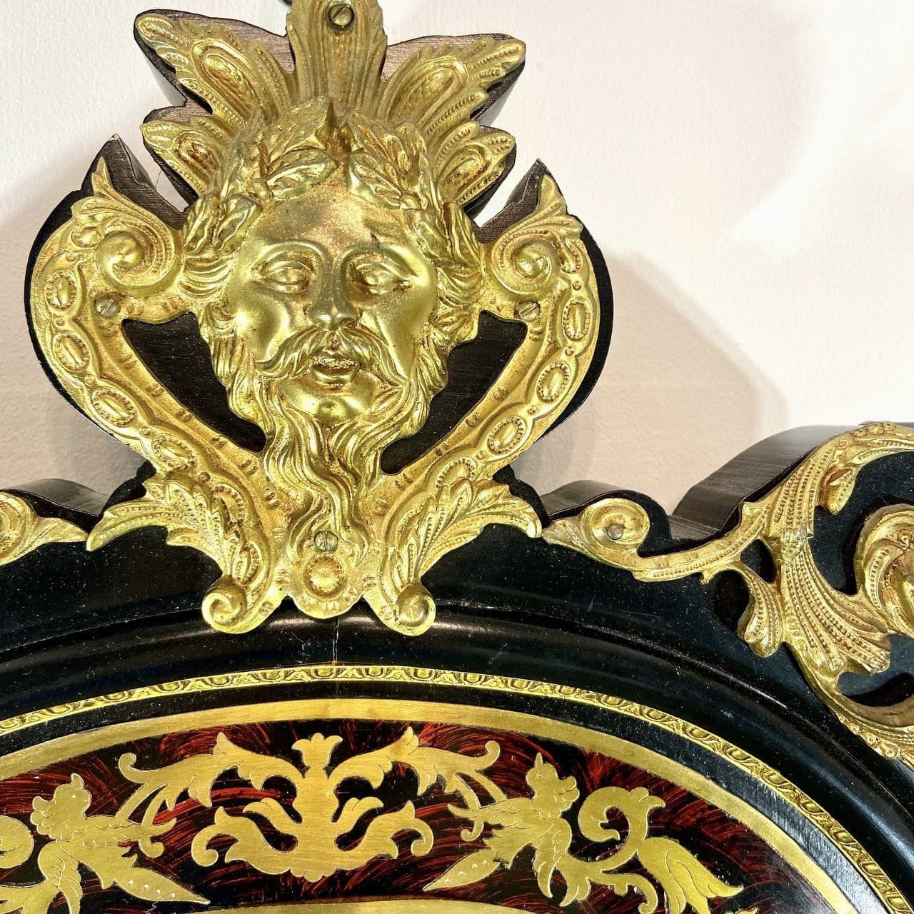 Редкая пара антикварных зеркал с декоративными рамами, выполненными в технике Буль около 1960 года, Франция. Деревянные рамы украшены тонкой бронзовой инкрустацией с растительно-зооморфным орнаментом и фигурными накладками из литой бронзы. Размер 66.5 х 108h см. Цена указана за пару.